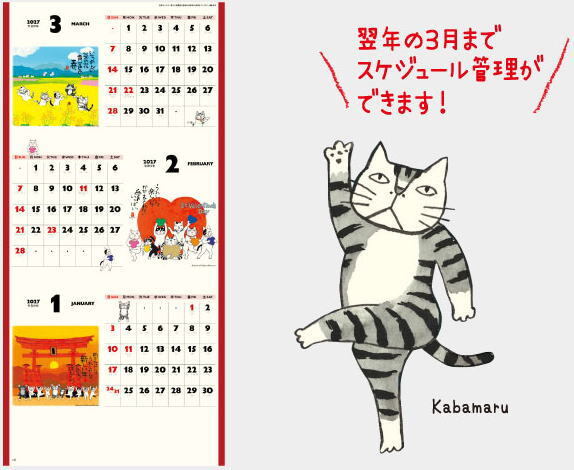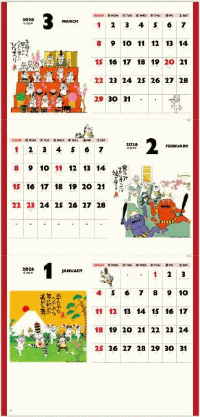 | 商品説明 | 大人気の招福ねこ暦シリーズに機能的な3か月タイプが新登場! 人気の3カ月カレンダー。 常に3カ月表示。 2025年1月~2026年3月まで コンパクトな縦長サイズの住空間に心地いいサイズ企画商品です。 環境に優しい紙素材のヘッダーです。 (金具不使用) ●招福ねこ暦 3か月文字 【商品詳細】 ・サイズ:61×28cm ・用紙:上質紙 ・仕様:3ヵ月タイプ、6枚 |