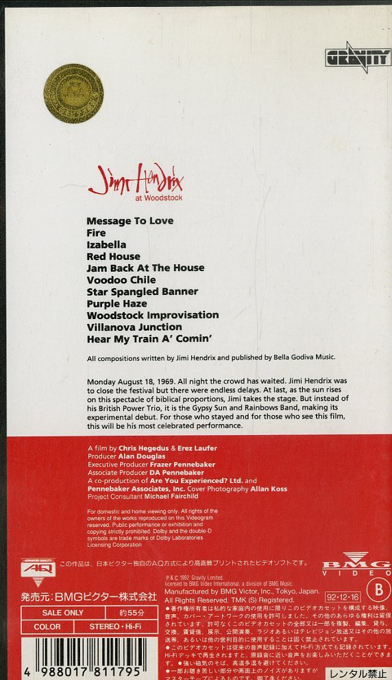 H00006620/VHSビデオ/ジミ・ヘンドリックス「ライブ・アット・ウッドストック」 [浏览原始页面]