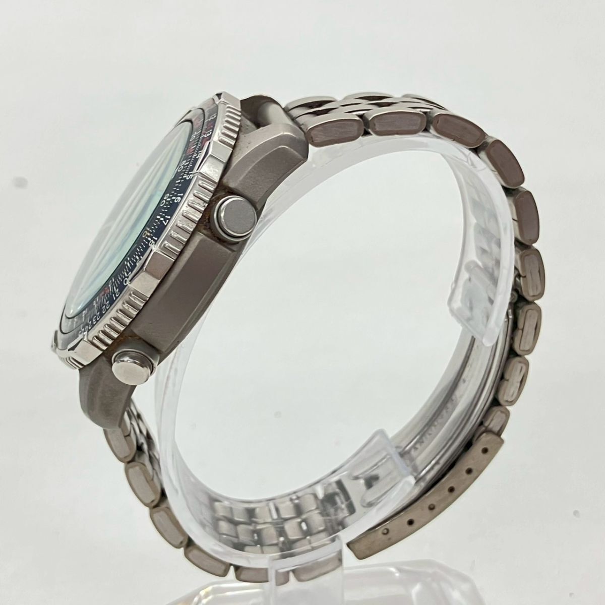 取り扱っている商品は未使用・未開封も含め、全て一度は人の手に渡った一点ものの中古・ジャンク扱いでの商品です。 当方素人ですので肉眼で確認できる簡易的な検品、採寸、および簡易梱包となります。 ※稼働の記載につきましては秒針等の確認のみとなり、全体の動作を保証するものではございません。 また、出品時の中古品の動作状況となりますので、予めご了承の上でご入札ください。 不動の表記につきましてはクォーツ式のムーブメントの場合、動作未確認の状態となります。 電池交換後、不具合があった場合でも返金、返品の対象とはなりませんので、予めご了承くださいますようお願い致します。 細かな日差、オーバーホール状況、社外パーツの使用に関しては保証しかねますので、ご理解いただけた上でのご入札をお願い致します。 上記を踏まえた上で中古品、ジャンク商品として出品させていただいておりますので、全てご理解いただけた上でのご入札をお願いいたします ------------------------------------------------------------------------- 【メーカー】 CITIZEN 【モデル名】 プロマスター 【型番】 C300-E80150 【シリアル】 490154 【サイズ】 直径約4cm 腕回り約16.5cm 【付属品】 画像参照 【稼働状態】 不動 【その他状態】 リューズ動作 時間:- 日付:- 曜日:- ベゼル両回転OK ------------------------------------------------------------------------- 画像にあるものが全てです。 他詳細は画像にてご判断ください。 ※目立つ傷や汚れを中心に写真を撮っておりますが、画像に写りきっていない傷等がある場合もございます。予めご了承ください。 ※商品を多数出品している関係で、稀に商品説明や画像に誤りがある場合がございます。予めご了承ください。 こちらのページをご覧いただく際は、商品説明文と掲載している画像の全てを確認いただいた上でご入札ください。 | |||||||