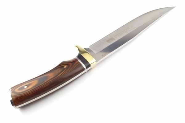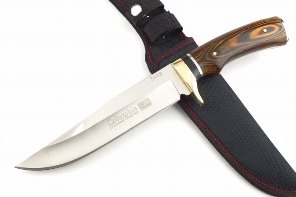 ★Columbia Saber★コロンビアナイフ 切れ味鋭いブレードと掌に馴染む握り心地で高い質感と造形美を放つハンターナイフです。 ハンドルは天然ウッド材でブレードを挟み込んだ堅牢なフルタング構造。折れやグラつきに強い設計です。 アウトドアにお奨めの優れた実用性。山歩きやキャンプ・DIYなどフィールドワークで大活躍の一本です。 洗練のデザインと握り心地の良さはコレクションにもお薦めの逸品です。