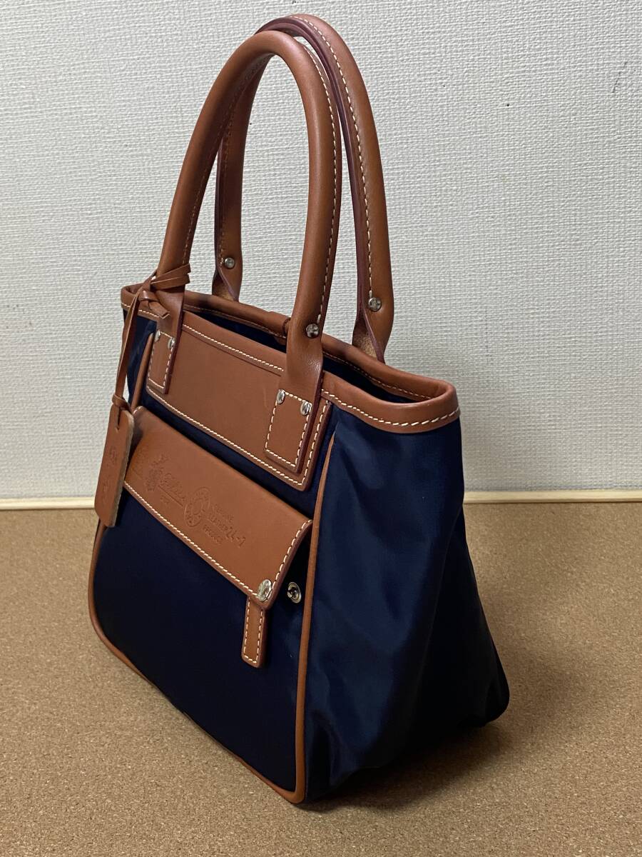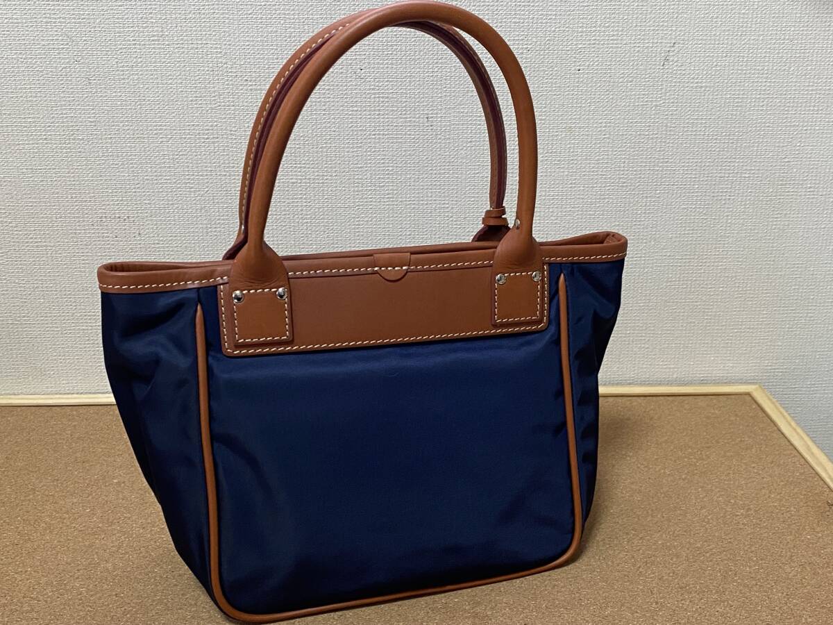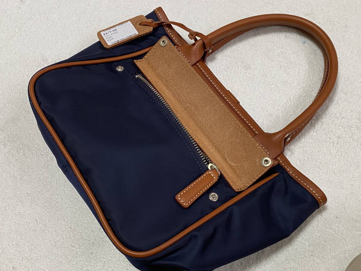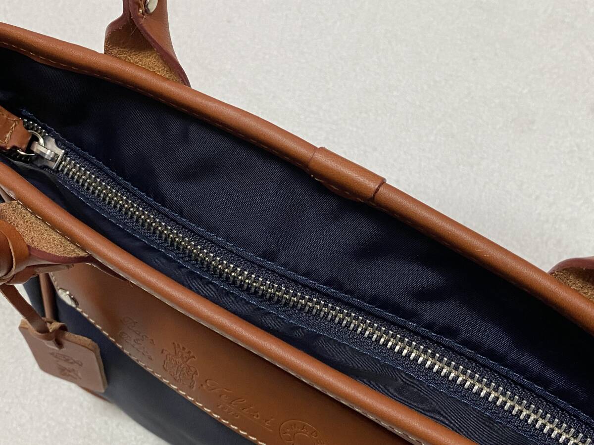 美品【Felisi/フェリージ】MADE IN ITALY トートバッグ 24/7-DS 定価75,900円(税込) カラー:BLEU ブルー(ネイビー系) Felisiの代名詞でもある アイコニックなデザインを採用 味わい深いバケッタレザーと 上質なナイロンの組み合わせが 抜群の使い心地と 上質なエイジングを楽しめます! 外側・表面にファスナー付ポケット×1 ポケット上部にはスナップボタン付の 被せ蓋レザーが付いております バッグ入り口はファスナー開閉式 内部にオープンポケット×1 内部は布貼り レザータグは取り外し可能 シルクのような光沢と イタリアンレザーにも通じる 鮮やかな発色が魅力のナイロン生地 高密度に織られた生地は しなやかな弾力性があり摩擦に強く 防皺性にも優れています。 その特性から使い込むほどに 革のように馴染んでいく Felisiを代表するメインマテリアルです 今回の品、USEDとなります レザー部分にほんのわずかなスレ等ありますが 遠目にはほとんど気にならない程度で ほぼ新品と変わらない 大変綺麗な状態です 使用感もほとんど感じられません ★実寸 W21×H19×D13cm ヨコ(バッグ入り口・平置き):約29cm ★素材 ナイロン×レザー |