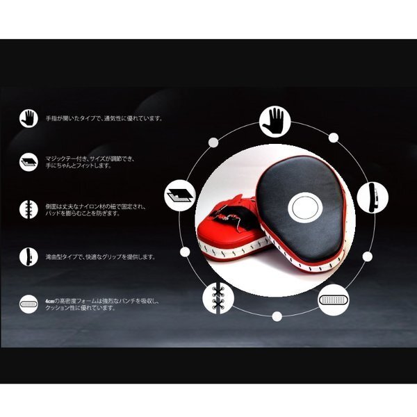 | 商品説明 | 厚手で高品質なパンチングミットのお得な左右セット! 軽量で衝撃吸収、損傷から体を保護することができます。 五本指スロットおよび各背面の手袋はしっかりとパッドを保持し、快 適に着用することができます。 表面は耐久性に優れた高品質のPUレザー製で、硬めの効力フォームが埋め込まれます。 ムエタイ、キックボクシング、MMAのトレーニングに使用することができます。 ミットの当たる所は内側にゆるいRが付いてます。 カラー:ブラック&レッド 材質:PUレザー+フォーム パッケージサイズ:約20×15 X15cm 左右重量:約240g |