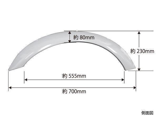 商品内容 | ■商品説明 汎用タイプ アーチ型オーバーフェンダー4点セットです。 出品ページ記載のサイズをご覧頂き、お車に適合するかご確認くださいませ。 片側35ミリワイド ■商品詳細 オーバーフェンダー前後左右セット ×1 ■備考 汎用となっておりますので、お取り付けの際は加工等必要になる可能性もございます。 お取り付けは、既存フェンダーの上から被せて頂き、フェンダーの耳部分をビスで固定して頂く形となります。 |