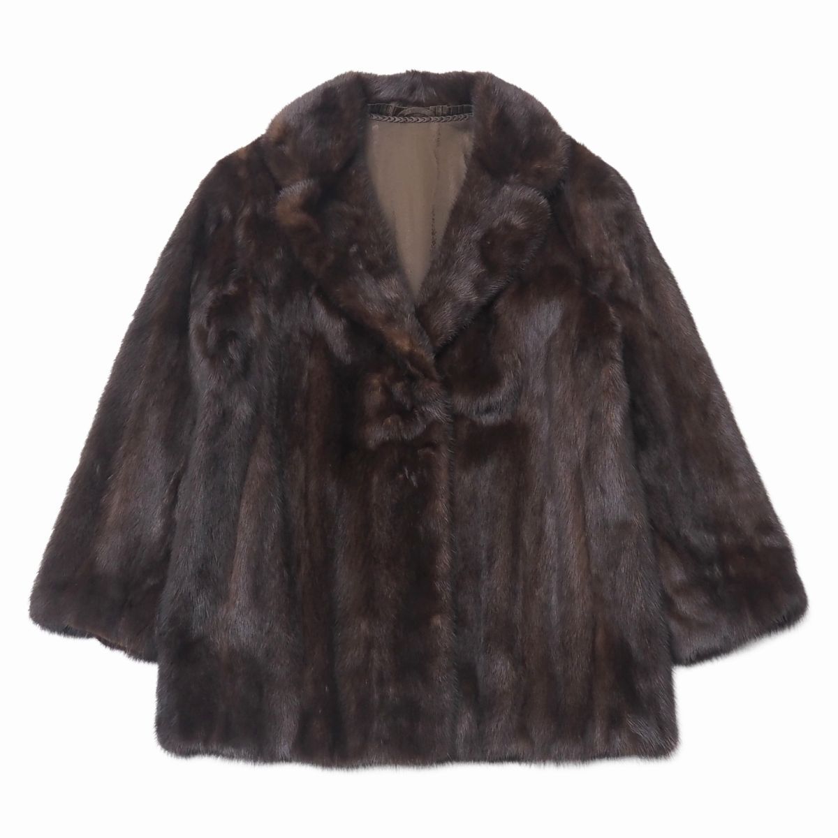 | GS5704◇ミンク ファーコート 逆毛衿 ハーフ丈 ファージャケット サイズ11 毛皮コート ブラウン系 | |||