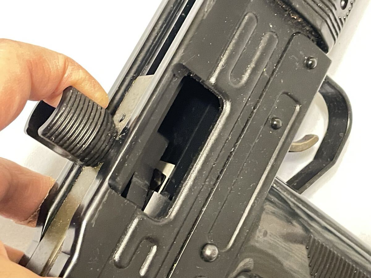 コッキングでき、ピストンは動きますが、マガジン・カートがないので、発射作動確認がとれませんので、ジャンク扱いでお願い致します。
