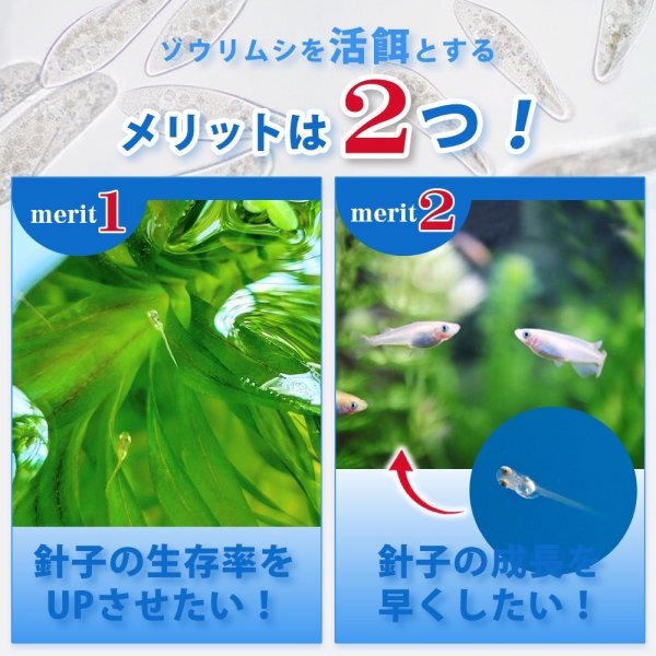 | 商品説明 | 針子や稚魚の生存率UP! 【ゾウリムシを活餌とするメリット】 1.針子の生存率が上がる! 2.針子の成長が早くなる! 初心者からプロの方までおすすめできる、 メダカの稚魚や針子に最適なエサです。 【発送】沖縄、北海道の方のご購入はご遠慮下さい。 到着までに1週間ほどかかり死着のしてしまいますので、ご理解よろしくお願いします。 ※ゾウリムシは0.1mm-0.2mm程の小さな生物な為、肉眼では確認しづらくなっております。 透明度の高いガラスやペットボトルに入れ、光を当てながら虫眼鏡やルーペ等で観察してください。 内容量1500ml 用途・稚魚や針子の栄養補給 ・ビーシューリンプ、金魚、めだか、グッピーのエサ ご使用方法適度な量を与えてください。 保存方法常温保存(15°~20°) ※コケが生えると良くない為、暗い場所に保管してください。 ※微生物は突然全滅する可能性もございます。2~3個の容器で保存してください。 注意事項900ml以下はネコポス、ポスト投函 900ml以上はヤマト運輸発払い ※なるべく早めにポストからお取りください。 |
