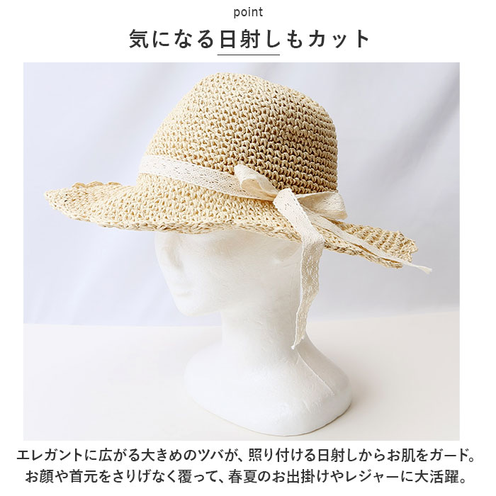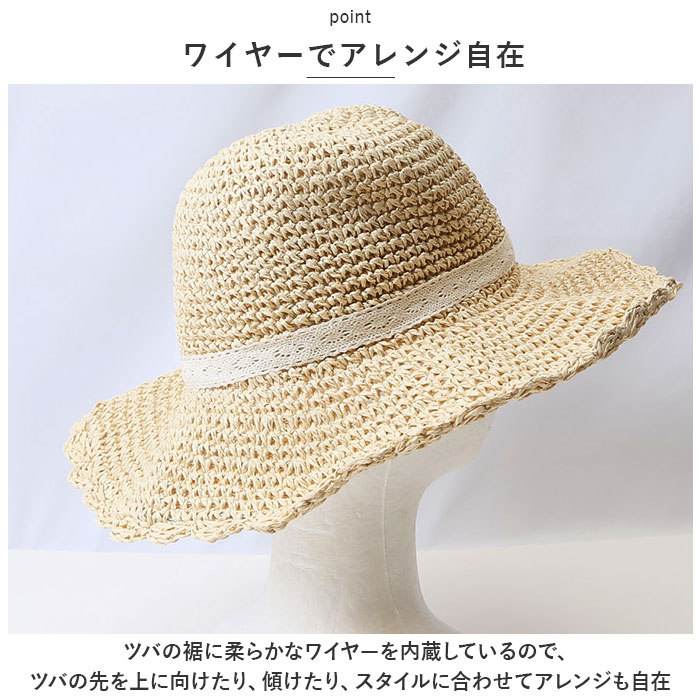 | 商品説明 | ・・ふんわり被って日射し対策!ナチュラルカラーが夏空に映える「ツバ広麦わら帽子」が新登場。 ・【ナチュラルなペーパー素材】 ・こんがり素朴な色合いのペーパー素材をざっくりと粗めに編み、季節感あふれるテイストに仕上げたストローハット。通気性もよく、汗ばむ季節でも爽やかな被り心地。 ・【軽くてとってもエコ】 ・ペーパー素材を使用しているのでエコなのはもちろん、強度がありながらとっても軽いのも嬉しいポイント。 ・【気になる日射しもカット】 ・エレガントに広がる大きめのツバが、照り付ける日射しからお肌をガード。お顔や首元をさりげなく覆って、春夏のお出掛けやレジャーに大活躍。 ・【サイズ調整紐付き】 ・ハット内側のサイズ調節紐を軽く結ぶことで、風の強い日や自転車を運転するときでも風で飛ばされにくく安心。 ・【ワイヤーでアレンジ自在】 ・ツバの裾に柔らかなワイヤーを内蔵しているので、ツバの先を上に向けたり、傾けたり、スタイルに合わせてアレンジも自在。 ・【持ち運び時はコンパクトに】 ・クルクルッと丸めていつものバッグに忍ばせておけば、コンパクトに持ち運べて、外出先でもすぐに被れて便利。 ・【可憐な大人コーデが叶う!】 ・ひらりと風に舞う、可憐なレースのリボンが目を惹く大人可愛いデザイン。ノスタルジックなカントリーコーデのアクセントに。 |