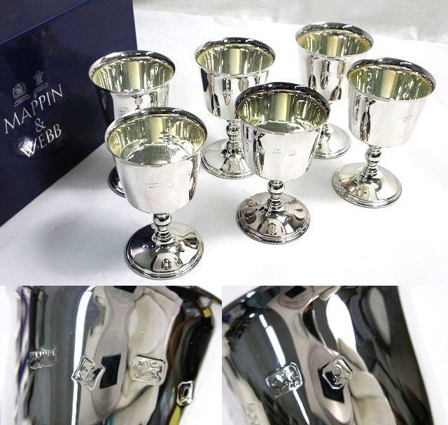 P058 美品 マッピン&ウェッブ 刻印柄 ワイングラス 6客 箱付 総重量:1190g【説明欄に詳細写真有り】