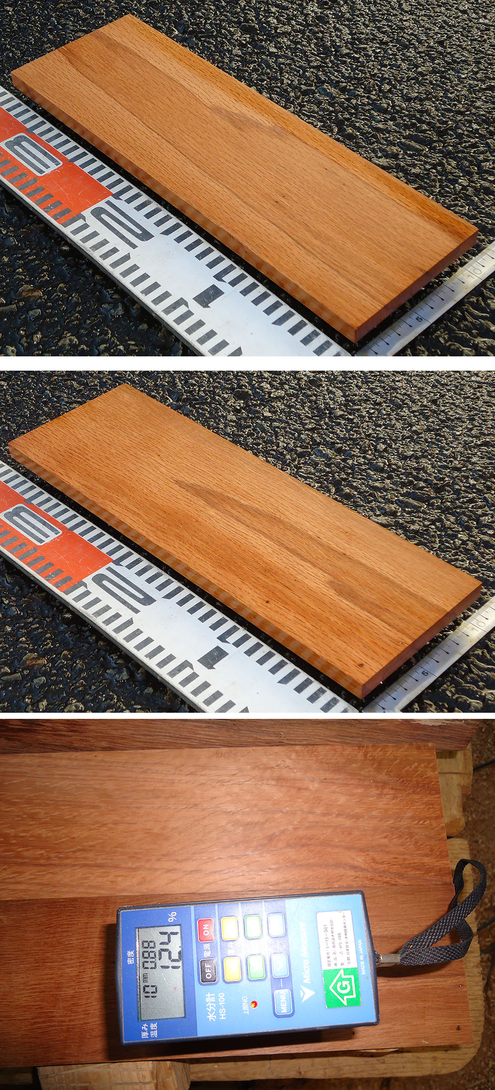 ・褐色で細かい樫杢が見栄えある素材、欠点は少なく乾燥状態も良好です。