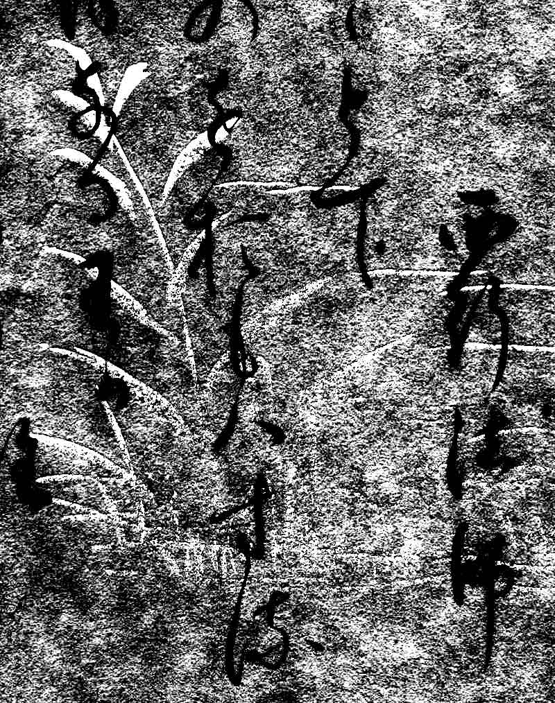 原本自筆上部には、「舟船(しゅうせん)の中に夜、琵琶を弾く者を聞く」《舟の中から夜、琵琶を奏でているのが聞こえてきた。》白楽天の元和十年(815年)江州での作。琵琶行という有名な漢詩です。