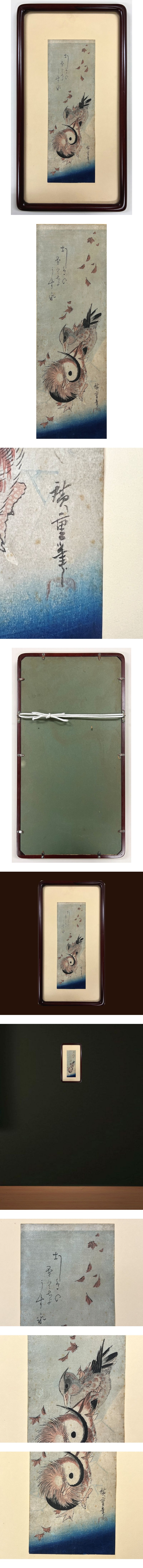 初代歌川広重 (しょだいうたがわひろしげ) 「落葉に氷上の鴛鴦」
