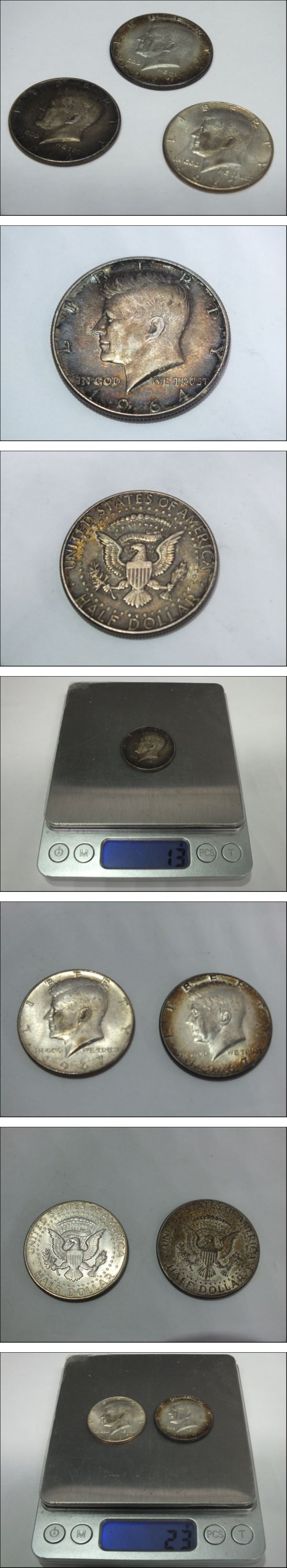 1964年 アメリカ合衆国ハーフダラー銀貨 ケネディ銀貨USA 1枚 1967年 ケネディ ハーフダラー銀貨 2枚 合計3枚セット | |||