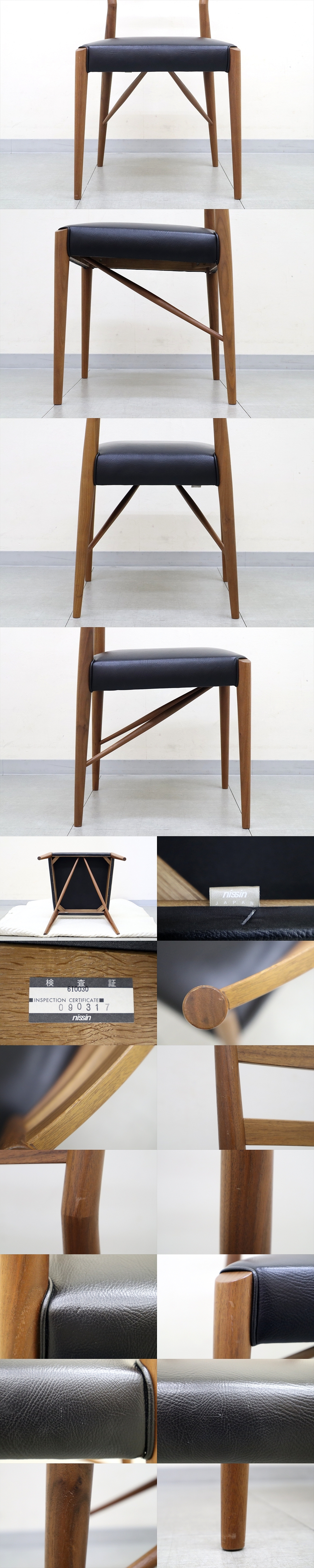 1 飛騨家具 日進木工 nissin GROW グロウ ナチュラルブラウン ダイニングチェア NCC-406 張り込み ブラックウォールナット 椅子 無垢材 1脚