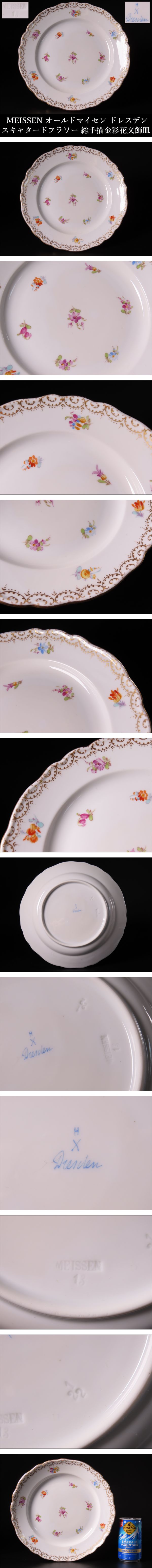【ONE'S】MEISSEN オールドマイセン ドレスデン スキャタードフラワー 総手描金彩花文飾皿 径22.5cm プレート 西洋美術 | |||