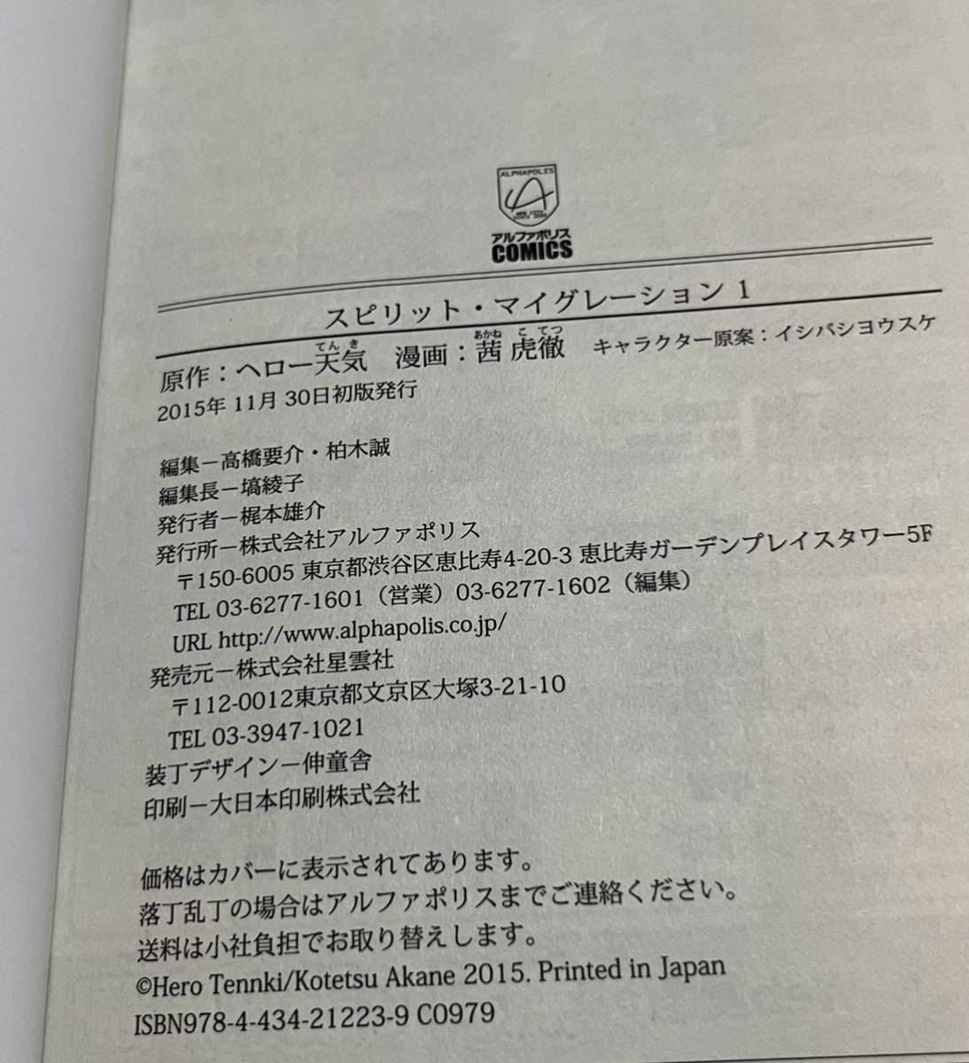 茜虎徹 スピリット・マイグレーション 1巻 サイン本 初版 Autographed 簽名書