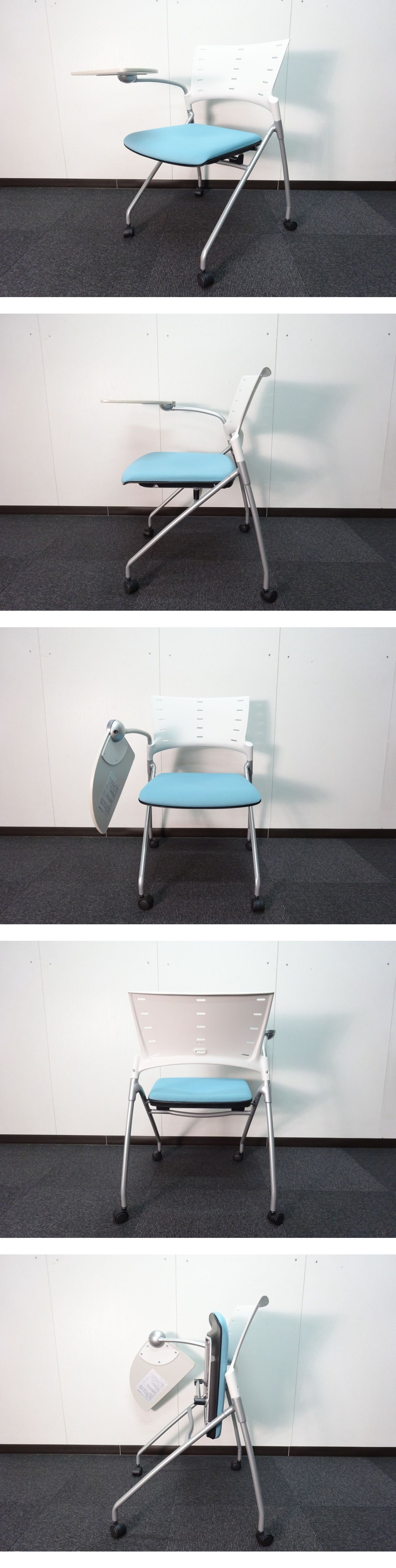 ・メーカー:イトーキ ・型番:KLC-312GB-W8S4 ・サイズ:W615×D625×H783(SH430) 単位(mm) ・背シェルカラー:オフホワイト ・座カラー:ターコイズブルー ・フレームカラー:シルバーメタリック ・価格:¥84,920円 オフィスファニチャーブランド イトーキのマノスチェア メモ台付 です。軽快なデザインが人気のマノスチェア。背もたれはソフトベンディングシェルで適度な柔構造でフィット感に優れた自然なベンディング効果が得られます。座面はベンディングシートになっており、座のインナーシェルには70以上のスリットがあり長時間使用でも疲労感の少ない柔らかな座り心地です。折りたためるメモ台付です。 ■仕様 ・背シェル:ポリプロピレン樹脂 ・座,:布地張り ・脚フレーム:スチールパイプ粉体塗装、ナイロン双輪キャスター付 ・メモ台:メラミン化粧板 ■機能 ・ベンディングシート ・ソフトシェルベンディング ・ネスタブル(座面を跳ね上げて簡単にスペース効率のよい収納ができます。) ■状態 ・こちらの商品は未使用品となります。新品同様でとても綺麗な状態です。現在3脚在庫がございます。この機会にいかがでしょうか! | ||||