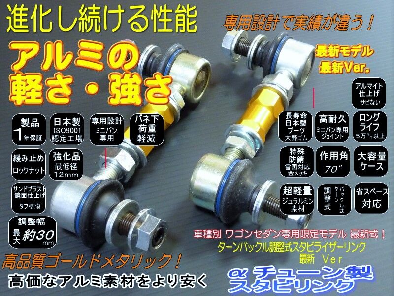 ★☆αチューン 調整式スタビリンク☆★ スタビライザーリンク 1台分2本(ターンバックル式) 製品はターンバックル式ですので車輌に取り付けたままの状態で調整ができます 軽量ジュラルミン極太シャフト採用、塗装は錆びない高級アルマイト仕上げ 鮮烈なゴールドがスポーティー感を演出します 各車種専用設計 30系 アルファード 全車 リア 専用 適合型式: AGH30 AGH35 GGH30 GGH35 AYH30 ※各車種規格が違いますので落札後に車種をお知らせください 年式やグレードによる違いや 車高調付属の専用スタビリンクがついている場合がございます 落札後今付いているスタビリンクの長さを確認する場合がございます 車高調専用リンクは要相談 車種によっては調整幅が若干短いものもございます この商品は~60mmまでのローダウンに対応 他社のものは25mm程度のローダウンしか対応できません ●製品説明 ローダウンによって機能しなくなっていたスタビライザーをよみがえらせます。 車高調やダウンサス、エアサスを取り付けている車両には必ず必要なパーツです。 ゴツゴツ感やフニャフニャ感が気になり、もう少し乗り心地を良くされたいと思われてい る方に是非この調整式スタビリンクを装着して体感して頂きたいと思います。 商品は車種専用品で車にマッチしたものをご提供いたします。異音や足回りとのトラブ ルがないものですので安心してお使いになれます。 純正のスタビリンクの長さを基準にして、約30mm調整が可能です。 取り付け方法と調整方法を写真入りで記載した説明書が付属していますので、簡単な 工具があれば素人でも短時間に取り付けできます。 安心のISO9001認定工場で製造。他出品のような台湾・中国製のものを自社検査と 言って売っているものではありません。 日本製パーツで日本で製造 この品質と安心 そして実績につながっています! 特にボールジョイントは日本製をさらに高めたクオリティー 台湾・中国製の耐久性とは 歴然の差。 長期にわたり異音を防止します。 なんとネジ部は強化してあります! 最近類似品が多くなっており、不具合が多く報告されております real_fs2、b_falcon2010、drum110923が出品しているものは汎用で 純正より長さが短くネジ径が細くなっています 15mmほど調整幅をうたっていますが、純正比にすると長さがわずかしか調整出来ません また純正長さにする時点でほぼ一杯に伸ばしているため強度が弱く折れたり脱落の 危険があります(シャフト部のねじの太さは軽用のサイズです) ネジ径が純正より細くなっています その耐久性は低くスタビライザーの効果を低下させます ナギサオート製も同様にネジ径が純正よりも細く高価です PlusLink製は3ヶ月程度で ジョイントがダメになり当方へ買い換えが殺到しています 一番細いねじ部は9mmです taiyo_planningが出品しているものは汎用でPlusLinkと同じ製造工場です kai powerのものは 純正を加工しシャフト部が8mm程度しかありません また取り付けたまま調整出来ません ナギサオート製は調整幅が短く、ねじ部が9mmと軽用の太さ 価格も高い 重要なのは一番細いねじ部の強度 新たに極太のジュラルミンシャフトを採用、強度と軽量化を実現しました。 表面は高級アルマイト塗装を施しメタリックゴールドを採用。 こちらの製品は各サイズ常時在庫しておりますので即納可能です。 同梱はこの商品だけを落札後お申し出ください。 2つ落札しますとそれぞれ手数料送料が発生します。 |