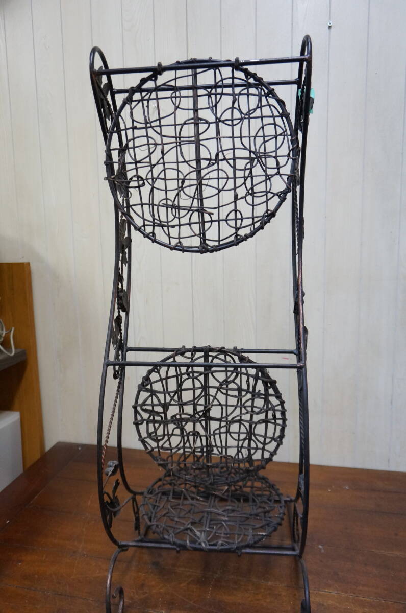 | 中古品☆フラワースタンド☆花台☆鉢スタンド☆3段☆アイアン・籐☆高さ76cm☆410S4-J15463 | |