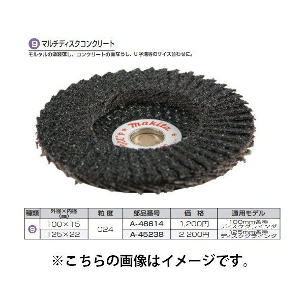 マルチディスクマルチディスクコンクリートモルタルの塗装落し、コンクリートの面ならし、U字溝等のサイズ合わせに。適用モデル125mm各種ディスクグラインダ