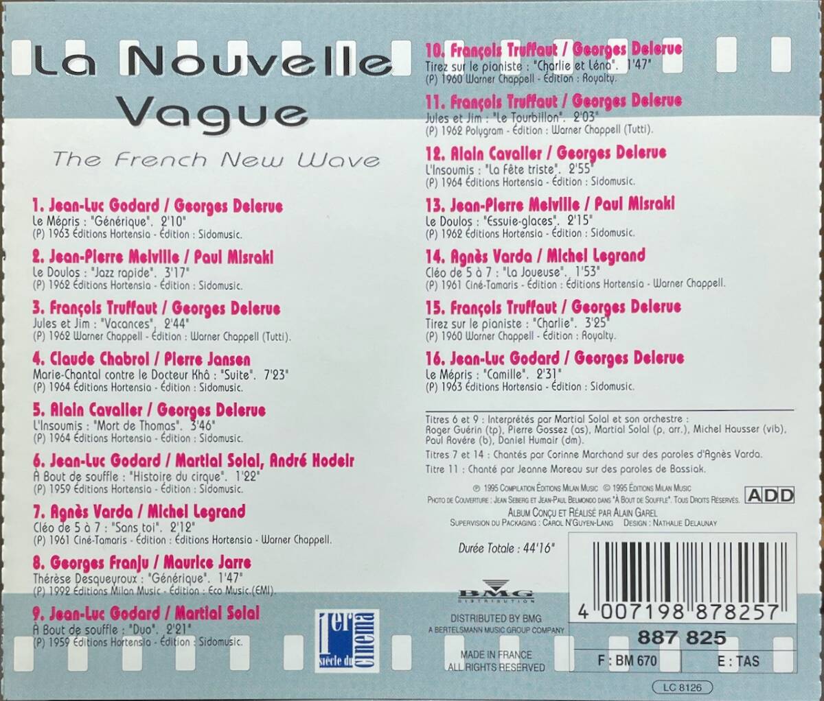 ------------------------------------------------- アーティスト:V.A. タイトル:La Nouvelle Vague - The French New Wave 品番:887 825 発売年:1995 (C4H) ★★★コンディション★★★ 生産国:フランス盤 帯:- ケース:交換済み ディスク:NM ブックレット:NM*表紙に軽いストッパー痕 ★★★曲目★★★ 1.Georges Delerue/Le Mepris: Generique 2.Paul Misraki/Le Doulos: Jazz Rapide 3.Georges Delerue/Jules Et Jim: Vacances 4.Pierre Jansen/Marie-Chantal Contre Le Docteur Kha: Suite 5.Georges Delerue/L'Insoumis: Mort De Thomas 6.Martial Solal/A Bout De Souffle: Histoire Du Cirque 7.Michel Legrand/Cleo A 5 De 7: Sans Toi 8.Maurice Jarre/Therese Desquevroux: Generique 9.Martial Solal/A Bout De Souffle: Duo 10.Georges Delerue/Tirez Sur Le Pianiste: Charlie Et Leno 11.Georges Delerue/Jules Et Jim: Le Tourbillon 12.Georges Delerue/L'Insoumis: La Fete Triste 13.Paul Misraki/Les Doulos: Essuie Glaces 14.Michel Legrand/Cleo De 5 A 7: La Joueuse 15.Georges Delerue/Tirez Sur La Pianiste: Charlie 16.Georges Delerue/Le Mepris: Camille ★★★解説★★★ *フランスにおける映画運動ヌーヴェルヴァーグ時代の音楽をコンピレーションした作品。 ジョルジュ・ドル --------------------------------------------------------------------- ☆お願い☆ ・他のサイトでも販売している場合がございます。 そちらで売れた際には出品の取り消しをいたしますので、お好みの商品がございましたら、お早めのご落札をおすすめいたします。 ・詳細な記載は割愛させて頂いている場合がございます。 商品内容、曲目等につきましてはお気軽にご質問下さいませ。 ・盤面につきましては、再生に問題のあるようなキズがある商品は出品しておりませんのでご安心下さいませ。 ・研磨痕は出来るだけ記載しておりますが極薄い場合は見落としもありますのでご容赦下さい。 ・きれいな物が多いですが、中古にご理解のある方のみ入札して下さい。 (80年代などの古い商品はジャケット・解説などの紙類が経年劣化が見られる場合が有ります。) ・梱包は、主にビニール袋(防水)+クッション封筒(破損防止)での梱包となります。(規格外サイズの商品は封筒+防水袋+プチプチ) コンディションについて ディスク NEW(未使用品) M(Mint..キズ無しの美品) NM(見た目ほとんどキズなどなしの美品となります(見る角度で微キズ、薄い線キズなどがある場合) EX(若干のスレ、キズ有りますが概ね綺麗/ごく薄い研磨痕など) VG(やや目立つキズ、研磨痕などあり/再生は問題ないもの) ブックレット、ジャケなど NEW(未使用品) M(Mint..キズ無しの美品) NM(見た目ほとんどキズなどなしの美品となります(軽いアタリ,スレ程度はあり) EX(若干のスレ、キズ有りますが概ね綺麗なもの/ケースの噛み痕,軽い折れ癖,背の色褪せなど) VG(折れ、破損、色褪せ、欠損などあり/カット盤) *輸入盤に関しては新品でもジャケの傷みなどある場合あり。生産国によってはジャケなどの紙類の作りが悪い場合あり。 *新品の状態がわからない場合が多いのでわずかな色褪せなどはご容赦ください。 *ボックス、インナーなどの欠品は元の状態がわからない場合は記載しませんので説明欄、掲載写真にてご判断ください。 <発送方法> クリックポスト 最初のお返事は48時間以内に、お取り引きは1週間以内に完了していただけるようにお願いいたします。 ※不在などの大事なお知らせは、自己紹介欄と落札後の自動メールに記載しますので、 自己紹介欄はご入札前に必ずご確認下さい。 他にも多数出品しておりますので、あわせてご覧下さい。