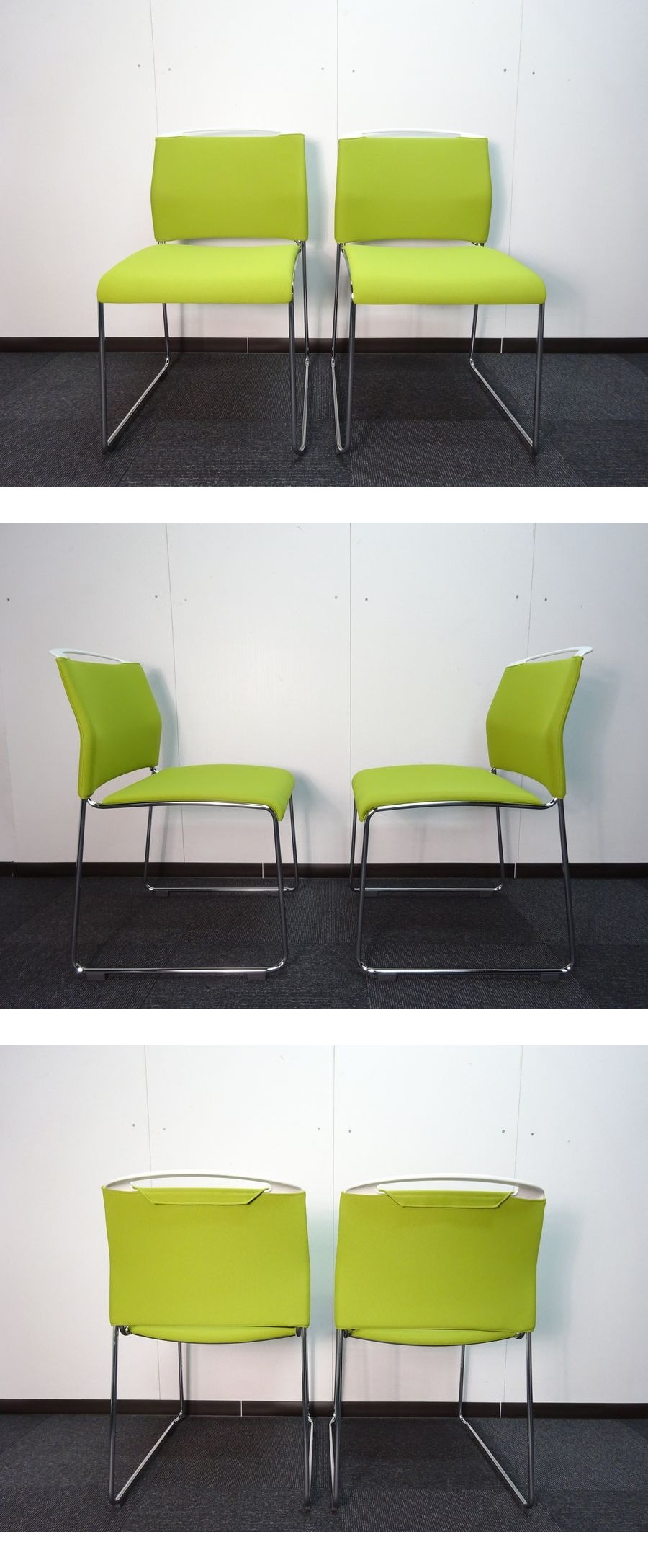 ・メーカー:イトーキ ・型番:KLU-110PGZ9W9Q6 ・サイズ:W470×D570×H786(SH430) 単位(mm) ・座、背カバー張地カラー:モスグリーン ・脚フレームカラー:クロームメッキ ・シェルカラー:ホワイト ・価格:2脚総額¥69,800円 オフィスファニチャーブランド イトーキのU-1チェア ループ脚タイプ 2脚セットです。会議、ミーティングに適したチェアでクッション材はポリエステル系エラストマーからなる弾性糸を用いた伸縮性布地です。ウレタンフォームに比べて通気性がある薄いクッション材で長時間の使用でも疲労感が少なく快適な座り心地です。 ■仕様 ・背、座:抗菌加工布地張り ・脚フレーム:スチールパイプクロームメッキ仕上 ■状態 ・こちらの商品は未使用箱入り商品となります。撮影と商品確認の為開封致しました。新品同様でとても綺麗な状態です。この機会にいかがでしょうか! | ||||