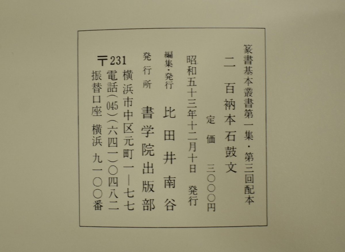 | ★商品説明・詳細など★ | ■昭和53.55年発行 書学院出版部 拓本 書本 4冊 百納本 泰山刻石 百納本 石鼓文 毛公鼎 呉昌碩篆書呉氏先世紀 検:中国書道 漢詩 *商品落札後のお支払期限は4日以内とさせていただきます。 4日を過ぎるとキャンセルとなり、自動的に【悪い】の 評価がつきますので御注意下さい。 ご理解の程、宜しくお願い致します。 ■USED品 ・薄ヤケや細かな汚れがあります。 ・簡単なページ確認を行いましたが、 目立った破れや虫食い等は見られませんでした。 全ページの細かな確認までは行っておりませんので、 書き込みなど見落としがある場合があります。 ・神経質な方はご入札をお控え下さい。 ≪商品発送サイズ≫佐川急便飛脚宅配便 【 80サイズ 】での商品発送です。 【発送元:石川県】 【配送料】はこちら→ 佐川急便 飛脚宅配便送料(佐川急便公式HP) ※佐川急便公式HPで送料を明記してある場合は送料に関するご質問はお答えできません。 ●画像に映っているものが商品及び付属品の全てです。他に付属品はございません。 ●商品の状態は説明欄、商品画像にてご確認くださいませ。 ●送料や配送方法、商品の状態をご確認の上お客様のご判断でご入札をお願いいたします。 ≪絵画の出品に関するルール改定≫当店も新ルールにしたがい絵画の出品方法を一部変更致しました。 ●(1)特定の作者の作品としている場合は、真作または模写と明記すること。 ●(2)特定の作者の真作としている場合は、万が一真作でない場合に返品を受ける旨を商品説明に明記すること。 ●(1)について、真作でないものは、最悪第三者による模写の可能性があるため、全て模写として出品いたします。 ●真作を出品する場合は、真作であることを明記し、万が一真作でない際には返品を受ける旨を商品説明に明記すること。(ノークレーム・ノーリターンの対象外商品です。) |