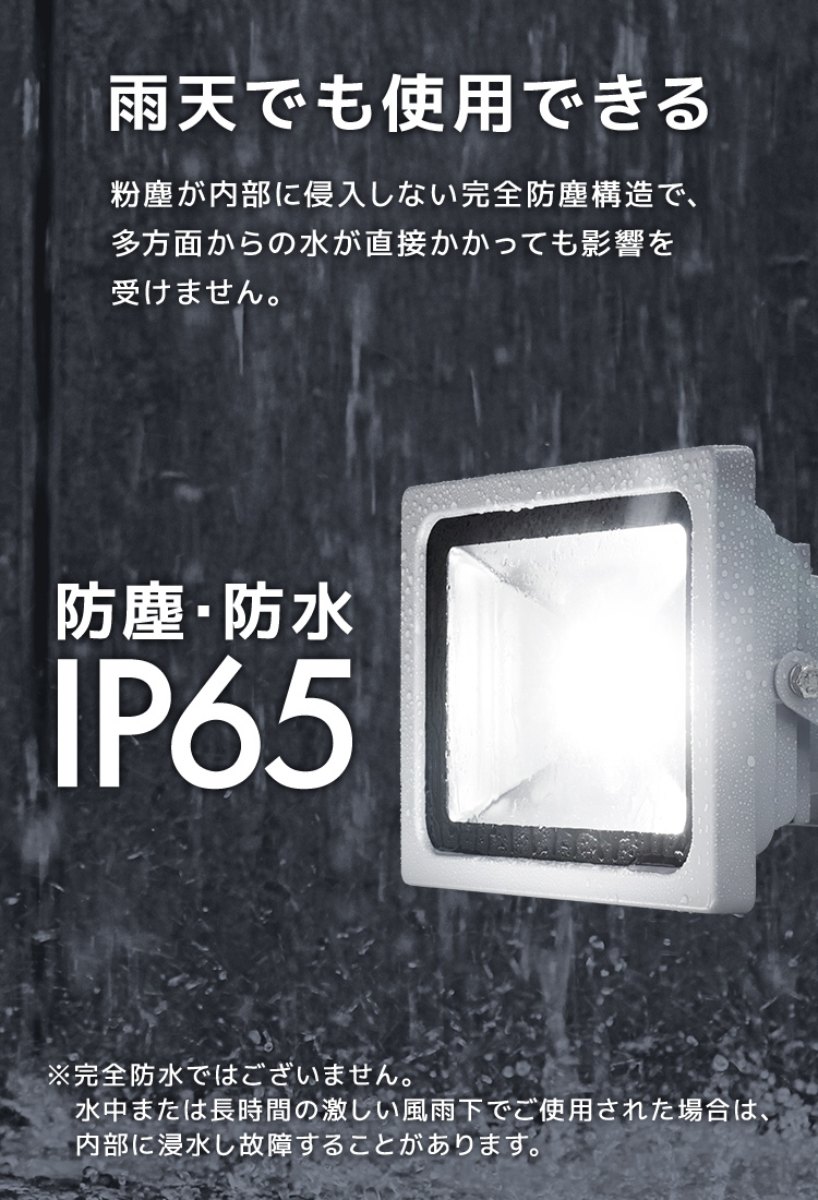 \ 安心の1年保証付き / 超高輝度SMDチップ搭載!明るくて省エネなLED投光器です。 投光器に適した台形リフレクターを採用し、ムラなく均一に照射します。 当製品は寿命が短くなる原因である「熱」を逃しやすくし、長寿命化を実現しました! またIP65規格の防塵・防水性能で、雨天でも使えます。 180度回転する取り付けステーには本体固定用の穴があり、壁や天井など様々な場所に設置できます。 爽やかでスッキリとした光で、色や文字がくっきり読みやすく、作業時に最適な点灯色です。 ■商品コード:A42BW ■商品仕様 2個 LED発光色:電球色(3000K) サイズ:(約)18cm×14cm×9.5cm 重量:(約)1.0kg ルーメン:1600LM 照射角:120度 入力電圧:AC85~265V 50/60Hz 防水規格:IP65 材質:アルミ合金、強化ガラス コードの長さ:(約)3.0m(プラグ付・スイッチ無) ■注意事項 ・DC電源を使用しないでください。 ・完全防水ではありません。台風などの強い風雨で使用すると、浸水するおそれがあります。ご注意ください。 ・光源を直視しないでください。目を痛める場合があります。 ・LEDドライバーユニットが後部に納められていますが、 固定されていない為振るとカタカタと音がする場合ありますので ご了承願います。(不良ではありません) ・商品は、モニターによって色合いが異なって見える場合があります。 ・仕様・デザインは改良のため予告なく変更することがあります。 ■保障期間 1年間 【新品未使用品です】 |