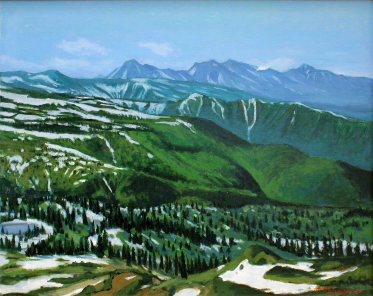 3枚のキャンバスを繋いだ、残雪と美しい山々のパノラマ作品| 出价者 | 信用 | 价格 | 时间 |