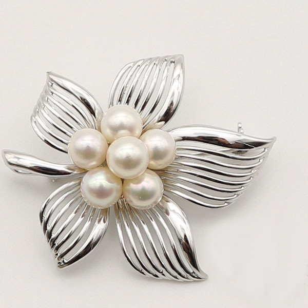 あこや真珠6.5mm-7mmパールを6pcs使ったシルバーパールブローチです。 |
