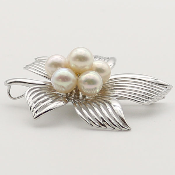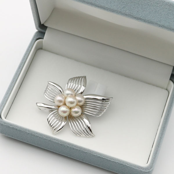 あこや真珠の数付ブローチはパールの定番で人気のデザイン。 |