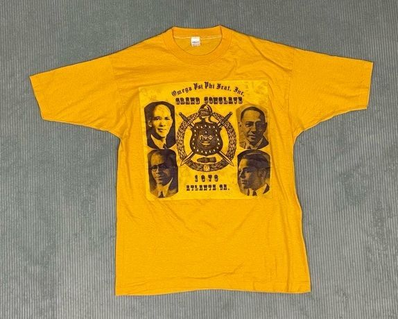 | 説明 | 70's mayo SPRUCEのTシャツ インターナショナルフラタニティ『Omega Psi Phi』 共同創設者エドガー・エイモス・ラブ、オスカー・ジェームズ・クーパー等のフォトプリント 袖・裾シングルステッチ MADE IN USA |