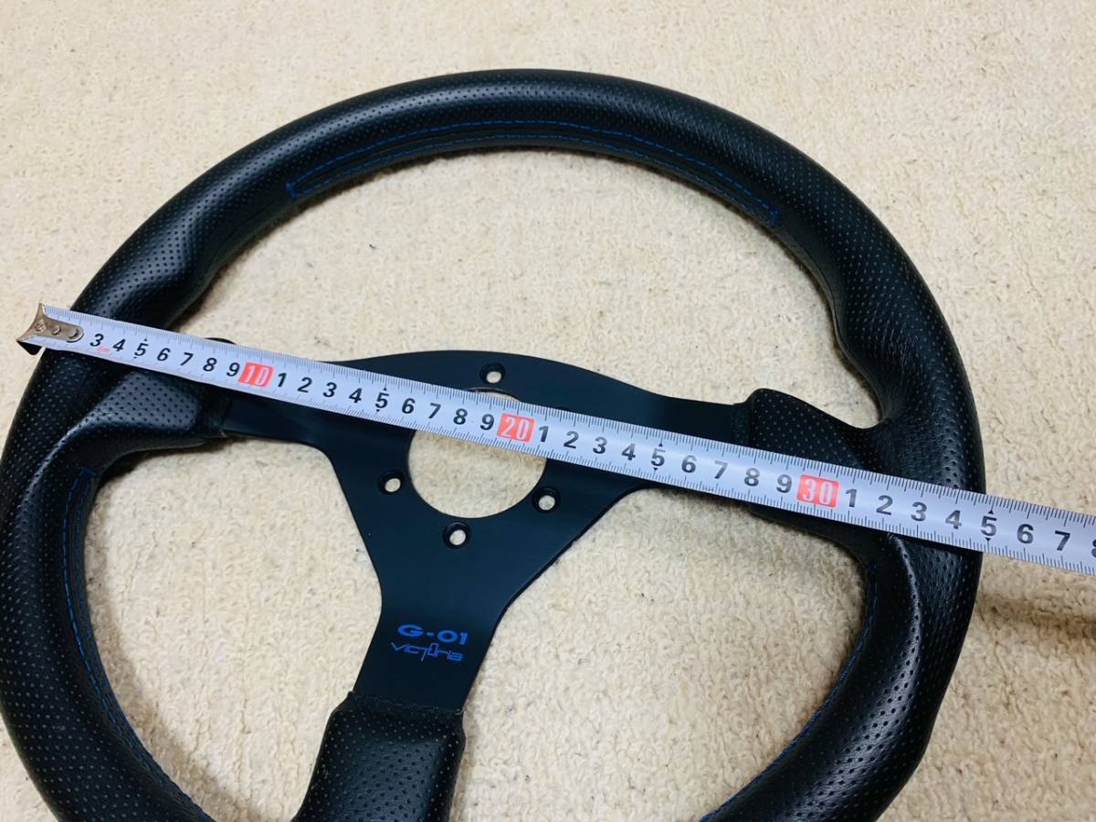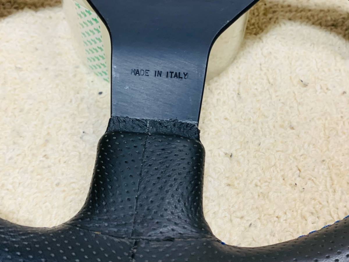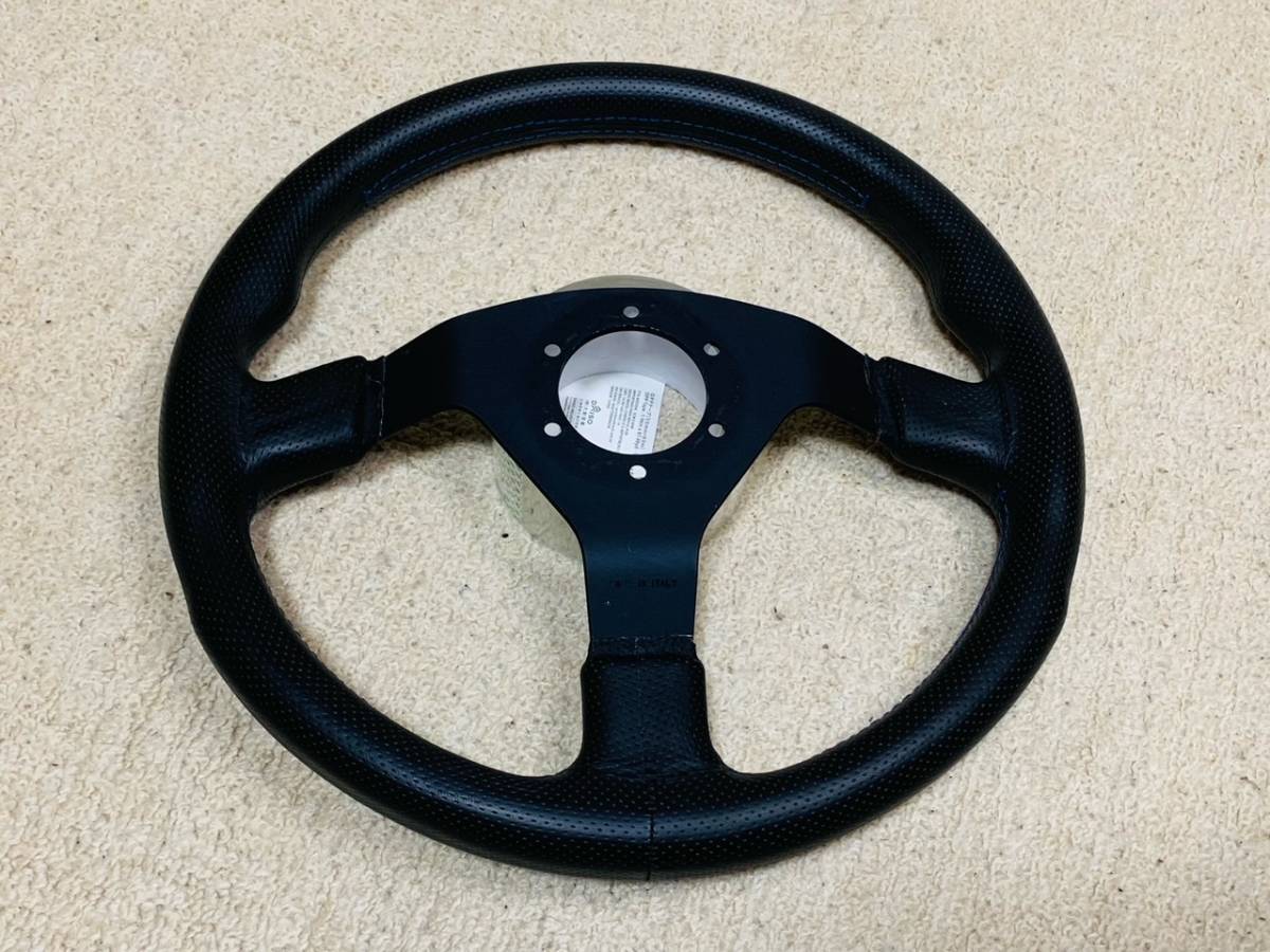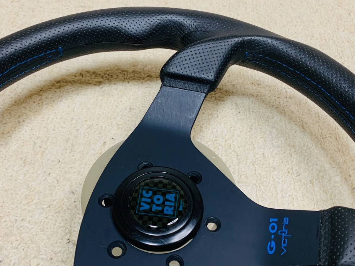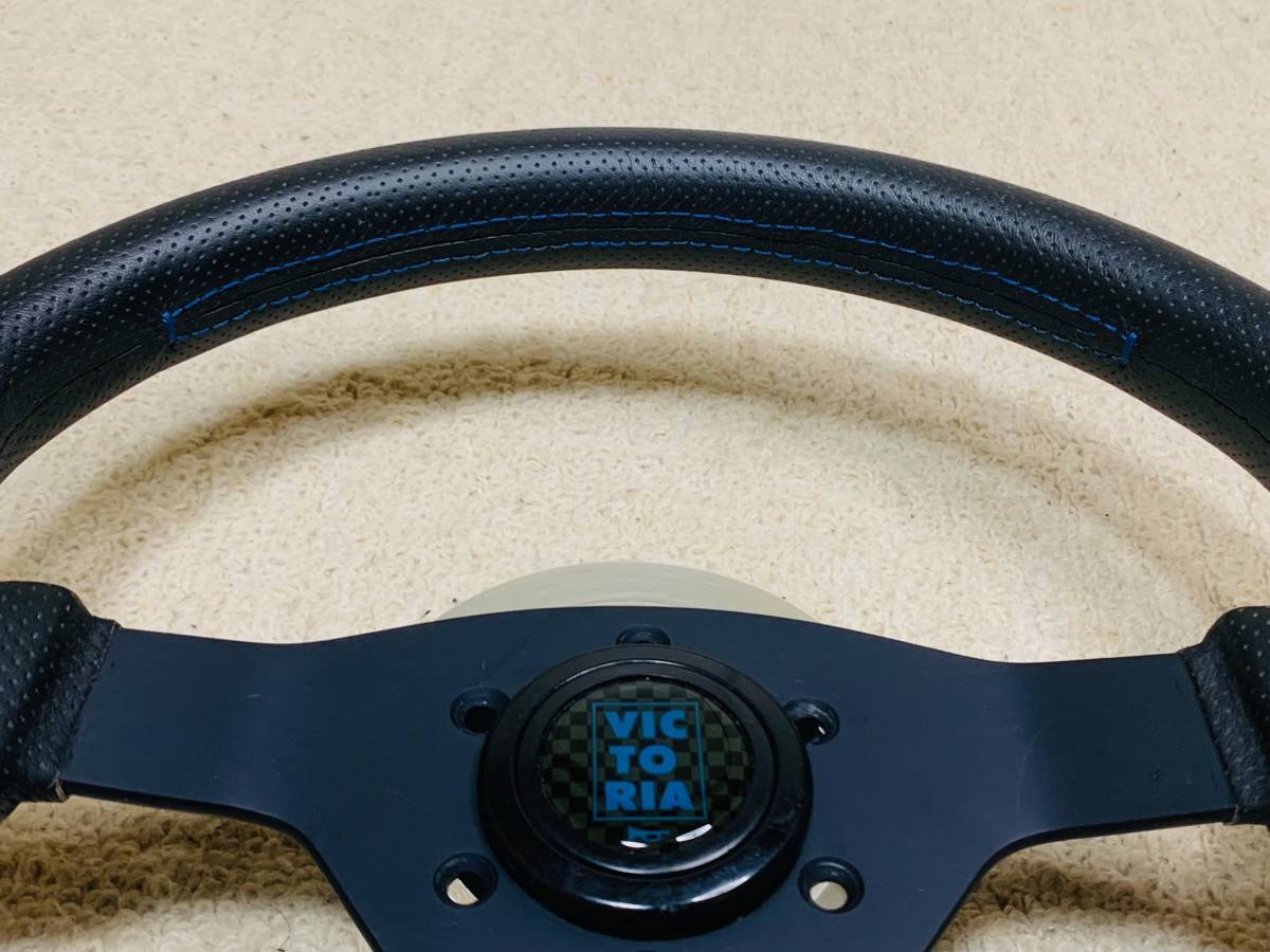 Victoria ビクトリア レザーステアリング G-01 ブラック 35π パンチングレザー ブルーステッチ イタリア製 当時物 ステアリング 350mm