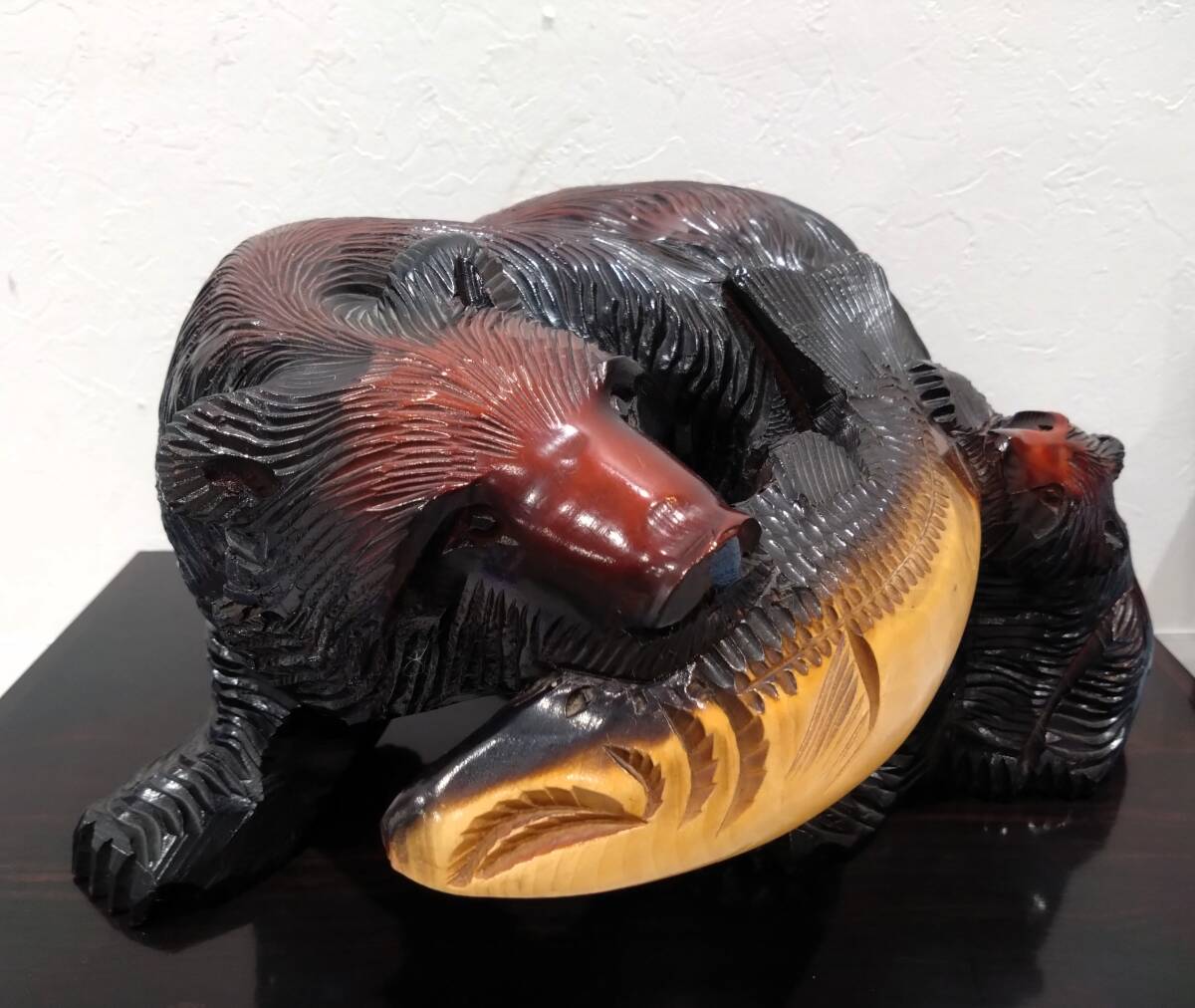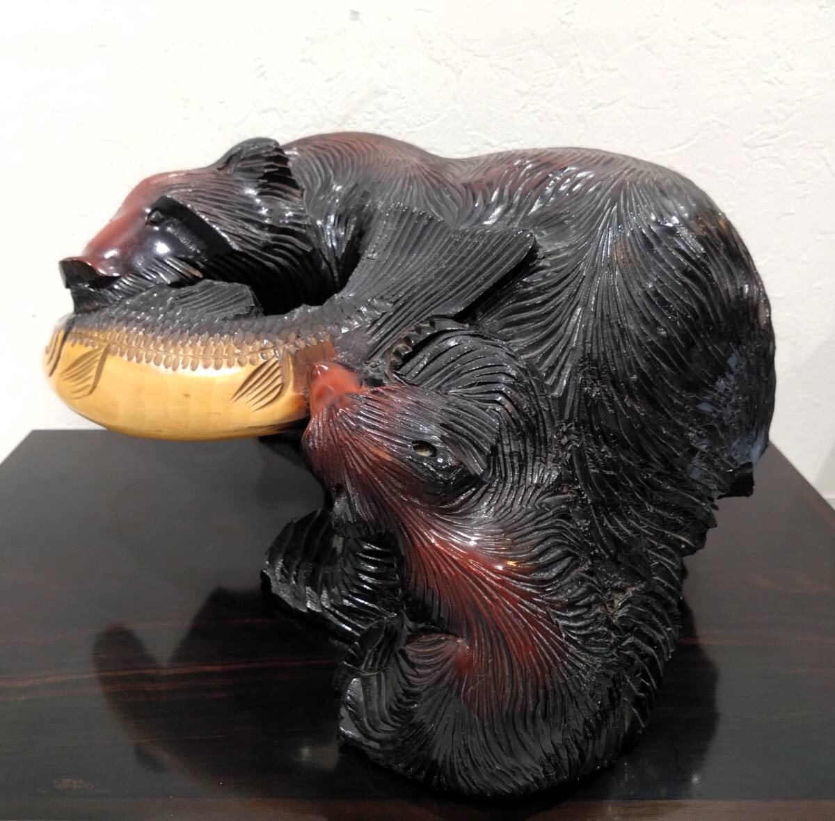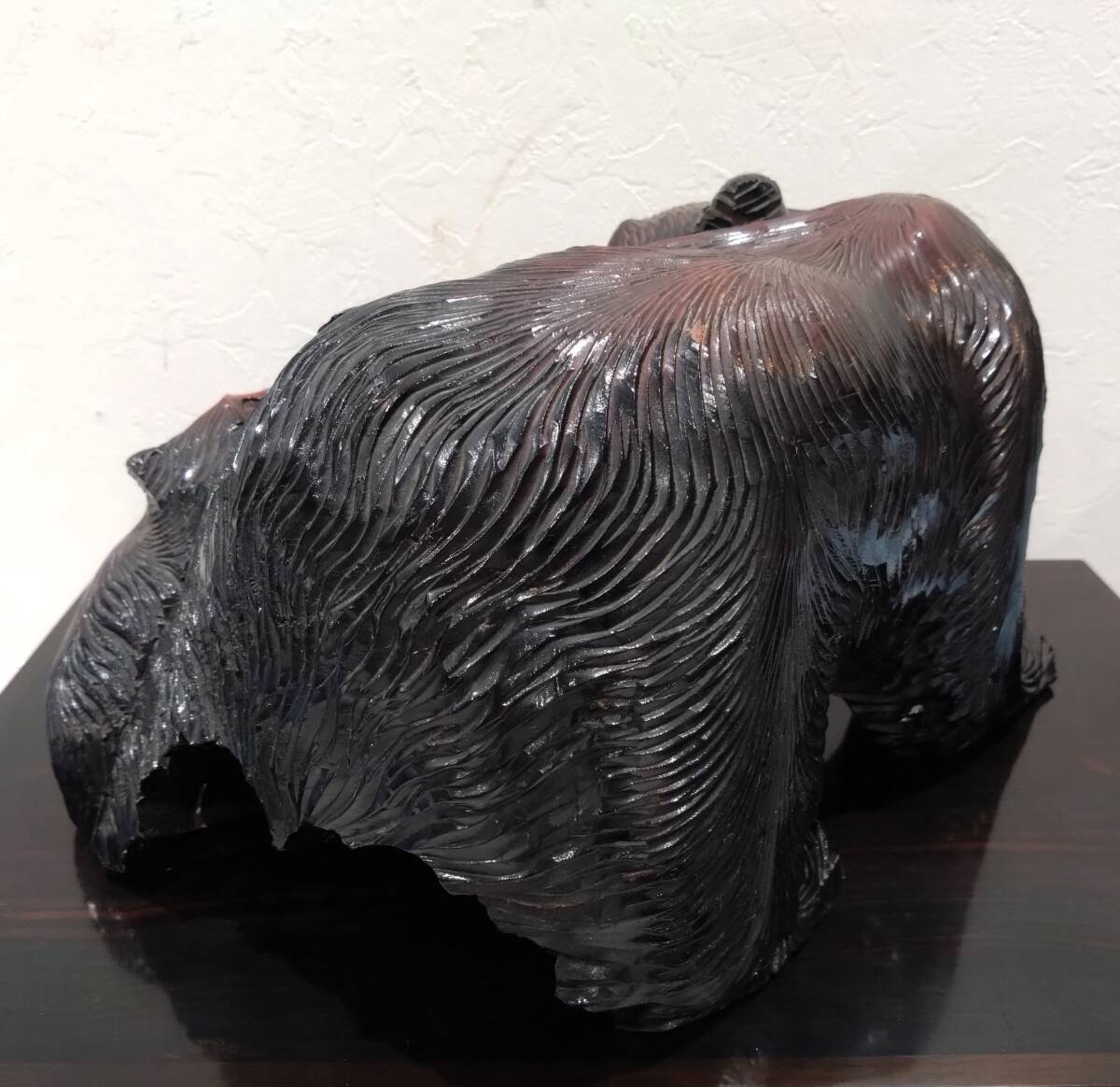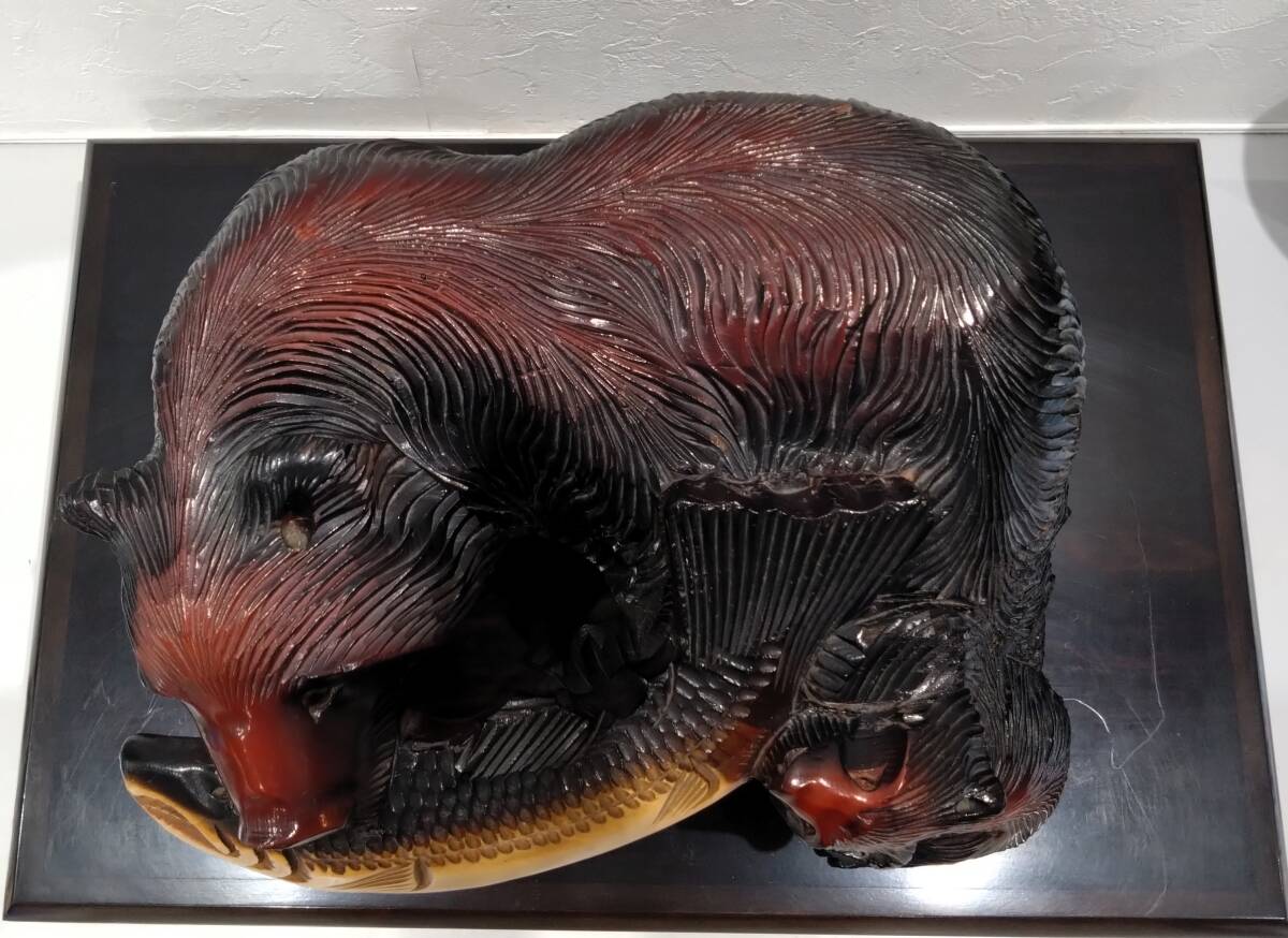 | ★68405 木彫りの熊 彫刻 木製 民芸品 置物 レトロ コレクション 台付 | ||