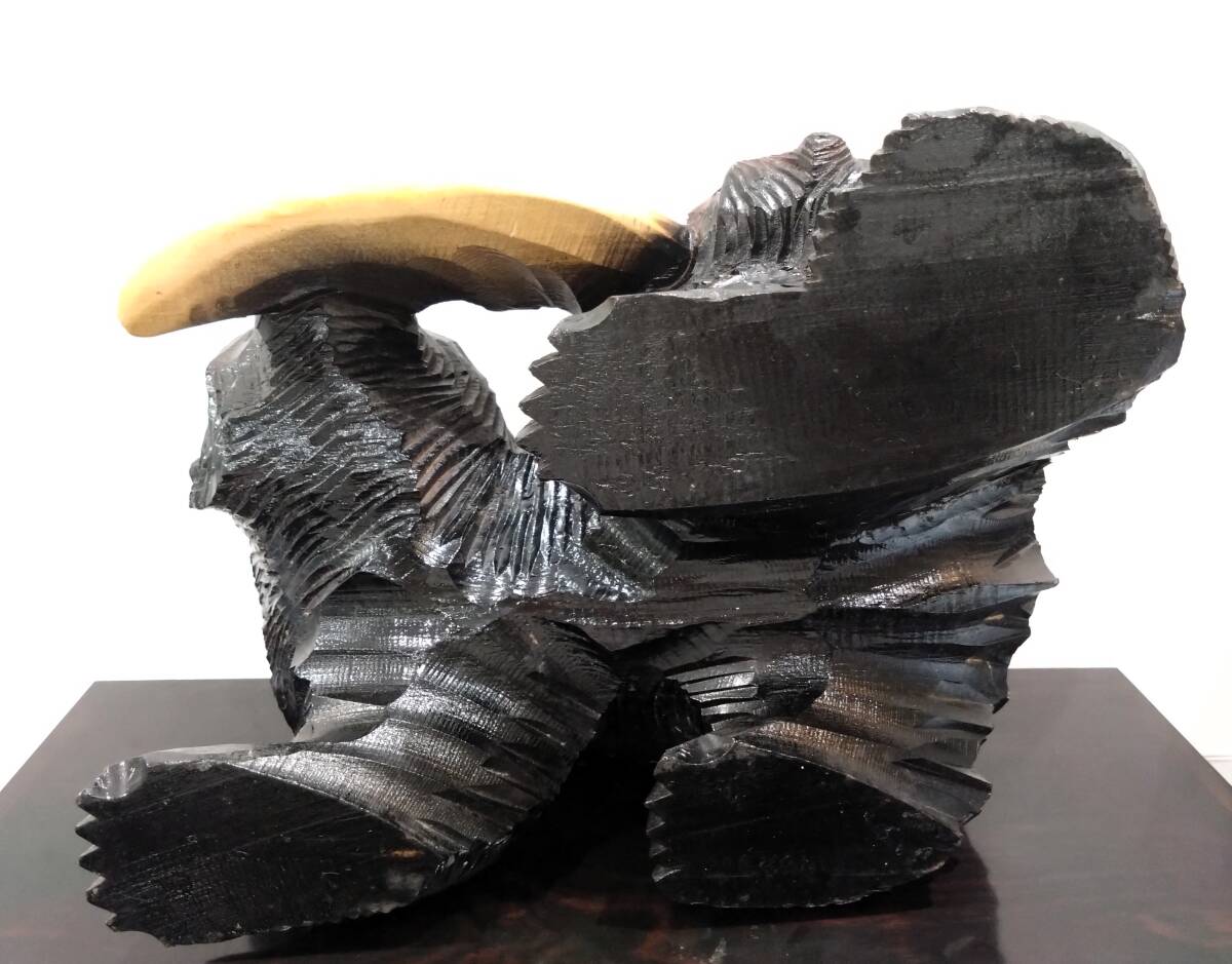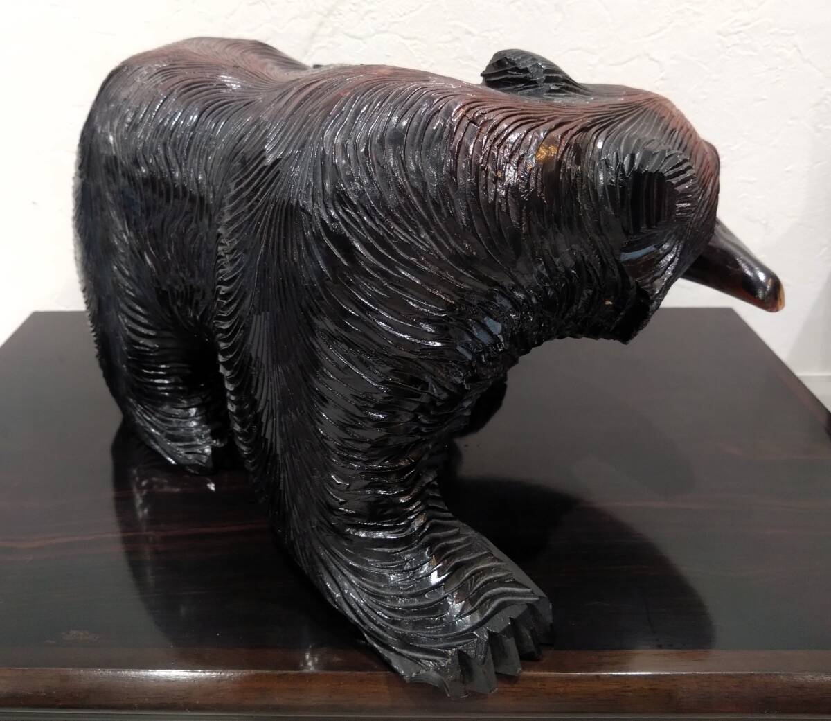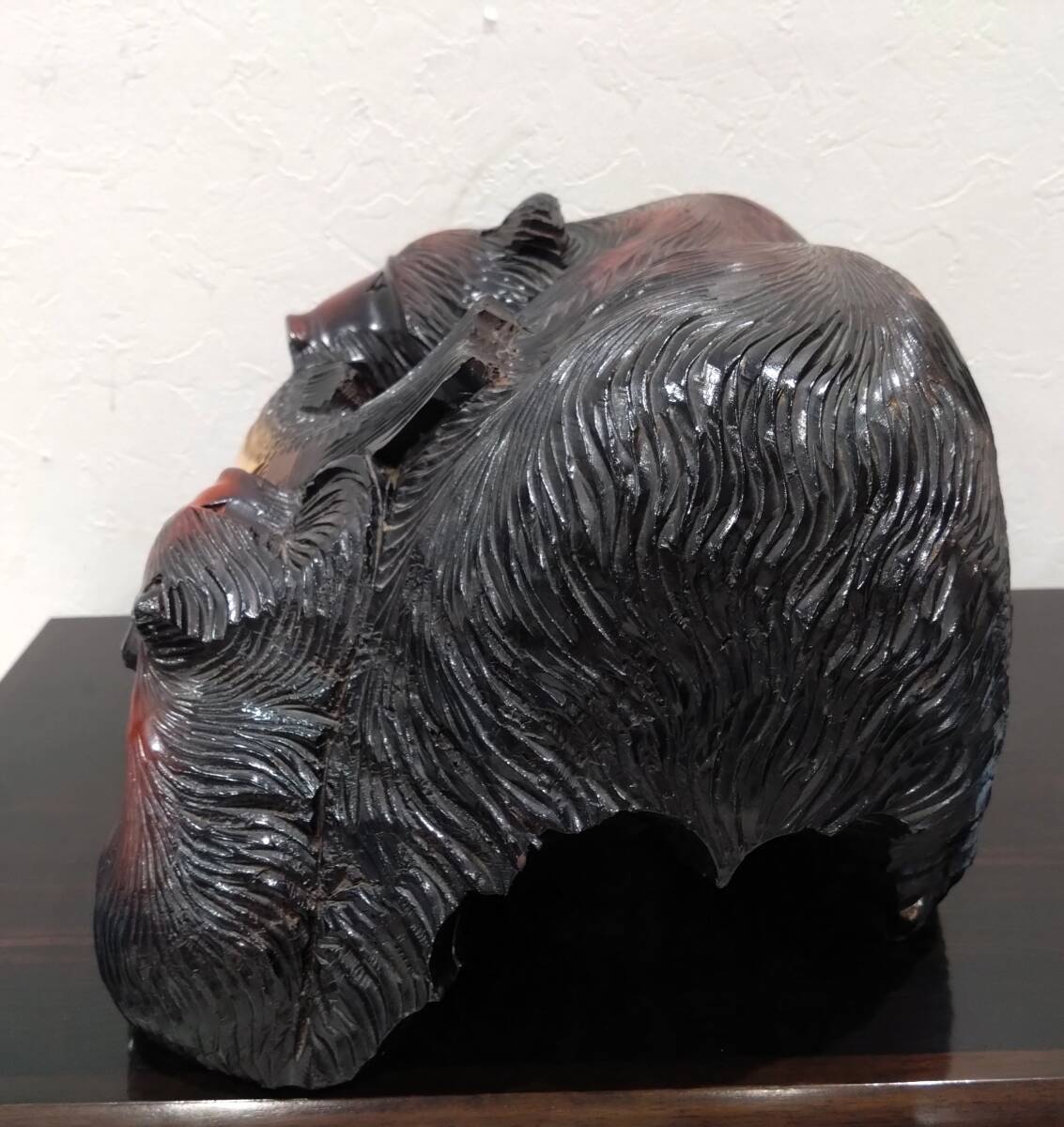 | ★68405 木彫りの熊 彫刻 木製 民芸品 置物 レトロ コレクション 台付 | ||