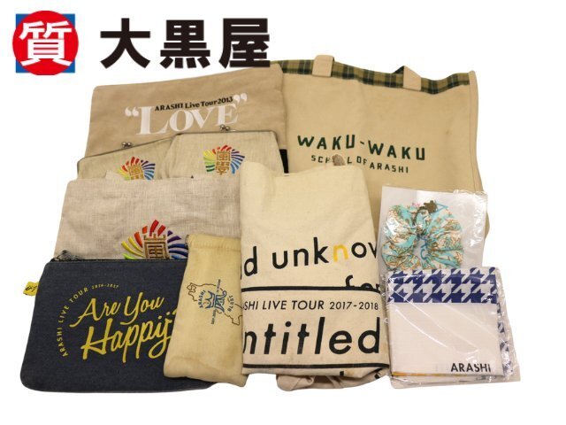 | 【付属品】合計10点 ・バッグ3点 ・ポーチ5点 ・ヘアアクセサリー ・ハンカチ 【サイズ詳細】メガネケース:約9cm×18cm フラットポーチ デニム:約22cm×約15cm ベージュ:約30.5cm×23cm がま口ポーチ:横 約16cm×縦 約11.5cm×マチ 6cm ハンドバッグ:横 約29cm×縦 20.5cm×マチ 10cm ショルダーバッグ 横45.5cm×縦36cm×マチ18cm ショルダー 約55cm~100cm トートバッグ:横 約33.5cm×縦 30.5cm×マチ 8cm 持ち手 約56cm 【状態】バッグ:トートバッグ、ショルダーバッグは全体的にシミ、汚れあり。 ハンドバッグは目立ったキズや汚れなし。 ポーチ:がま口2点は外側のシミ、金具部分の劣化、内側の汚れあり。 フラットポーチ(デニム)は全体的に毛玉あり。 フラットポーチ(ベージュ)は裏面に汚れあり。 メガネケースは全体的にシミ、汚れあり。 ヘアアクセサリー、ハンカチは未使用と思われます。 【コメント】嵐のグッズ10点セットが入荷しました。是非ご検討ください。 ※当社で扱う商品は全て中古品(二次流通品)の為、必ず使用感やダメージがございます。 ※当社にて修理等は承っておりませんので、予めご了承の上お買い求めください。画像にてご判断ください。 ※パソコンやスマホによっては実際の色と多少異なる場合がございます。 ※ラッピング不可商品(F) |