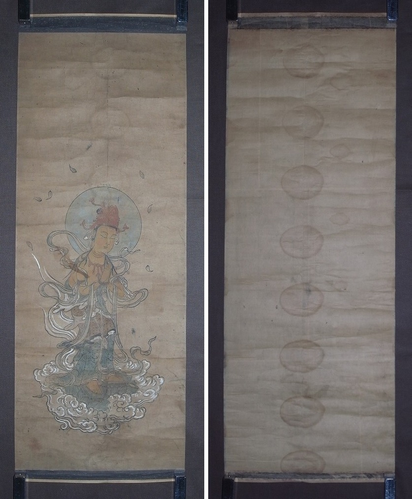 ◇出品物紹介仏画『観音菩薩』マクリ〔紙本版摺彩色〕でございます。