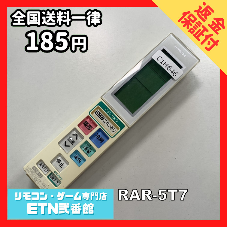 C1H646 【送料250円】エアコン リモコン / 日立 ヒタチ HITACHI RAR-5T7 動作確認済み★即発送★ 冷房 暖房