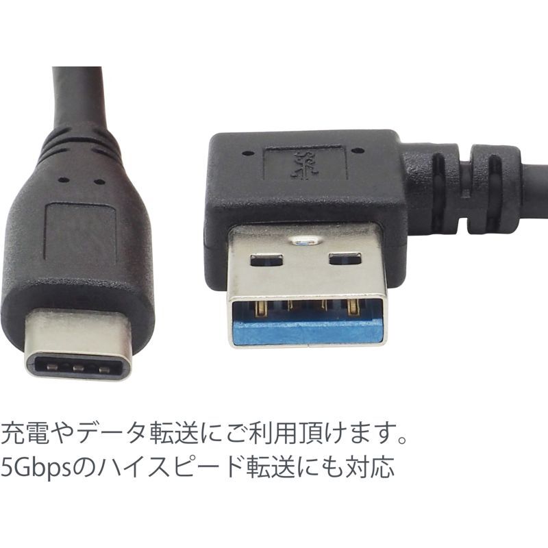 USB3.0 USB3.2 gen1 5Gbpsに対応したUSB L字型 USB-A - USB-Cケーブル充電やデータ転送にご利用頂けます。