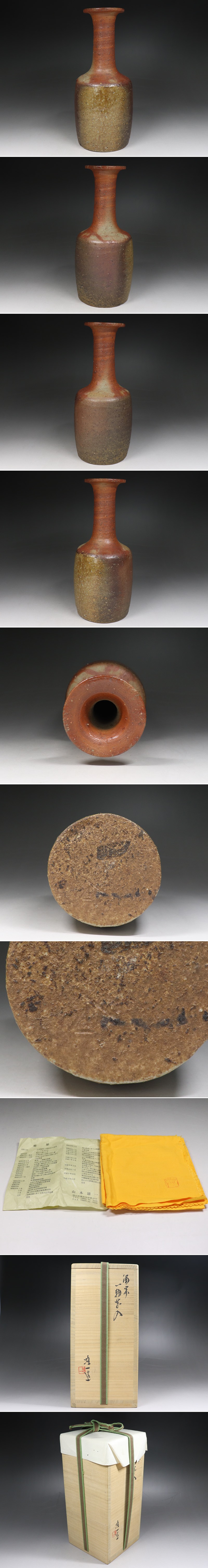 | ■備前■山本雄一・一輪花入・花瓶・栞・共布・共箱・県重要無形文化財・検 山本陶秀・f7165h | ||||||||||||||||||||