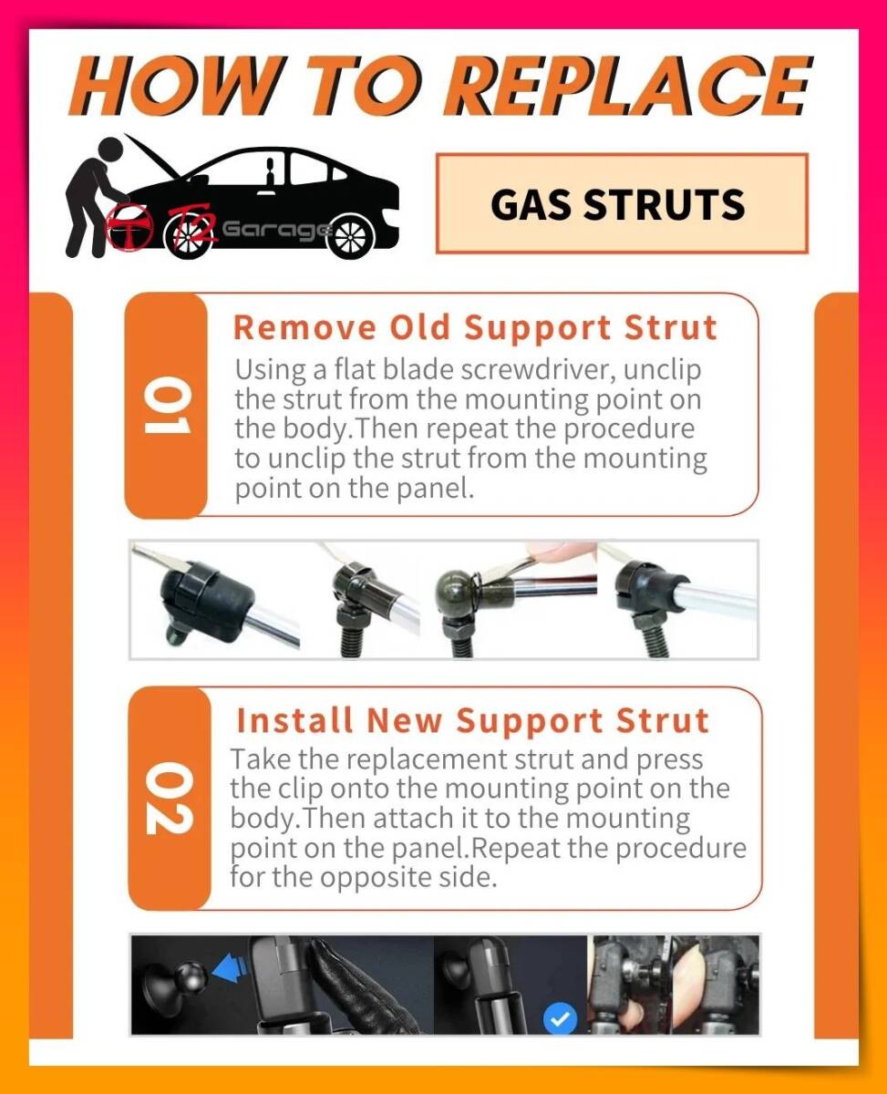 セット内容には、リアゲートダンパーが2本含まれており、左右両方のゲートをサポートします。 取り付け説明書も同梱しているので、ご自身で簡単に取り付けが可能です。 万が一、取り付けに困った場合は、お気軽にご連絡ください。できる限りサポートさせていただきます。