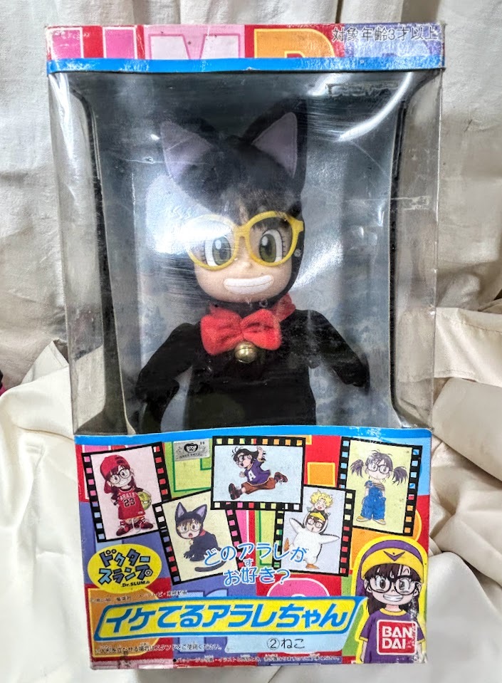 ◆ご入札頂いた時点で商品にご納得して頂いたと当方で判断させて頂きます。●必ず下記注意事項をご確認の上入札お願い致します。落札後のトラブルを避けるため気になること等ございましたら些細なことでも入札前にご質問ください。当時物 BANDAI/バンダイ Dr.SLUMP/ドクタースランプ アラレちゃん イケてるアラレちゃん ② ねこ人形 約26センチ未開封箱にスレによるうす傷、小さい折れ・凹み潰れ破損などの傷みがあります。現状引き渡しとなります。長期自宅保管品です、ご理解の上入札お願いします。写っている物が全てとなります。中古品です。状態は、年相応です。古い物ですので程度等ご了承下さい。