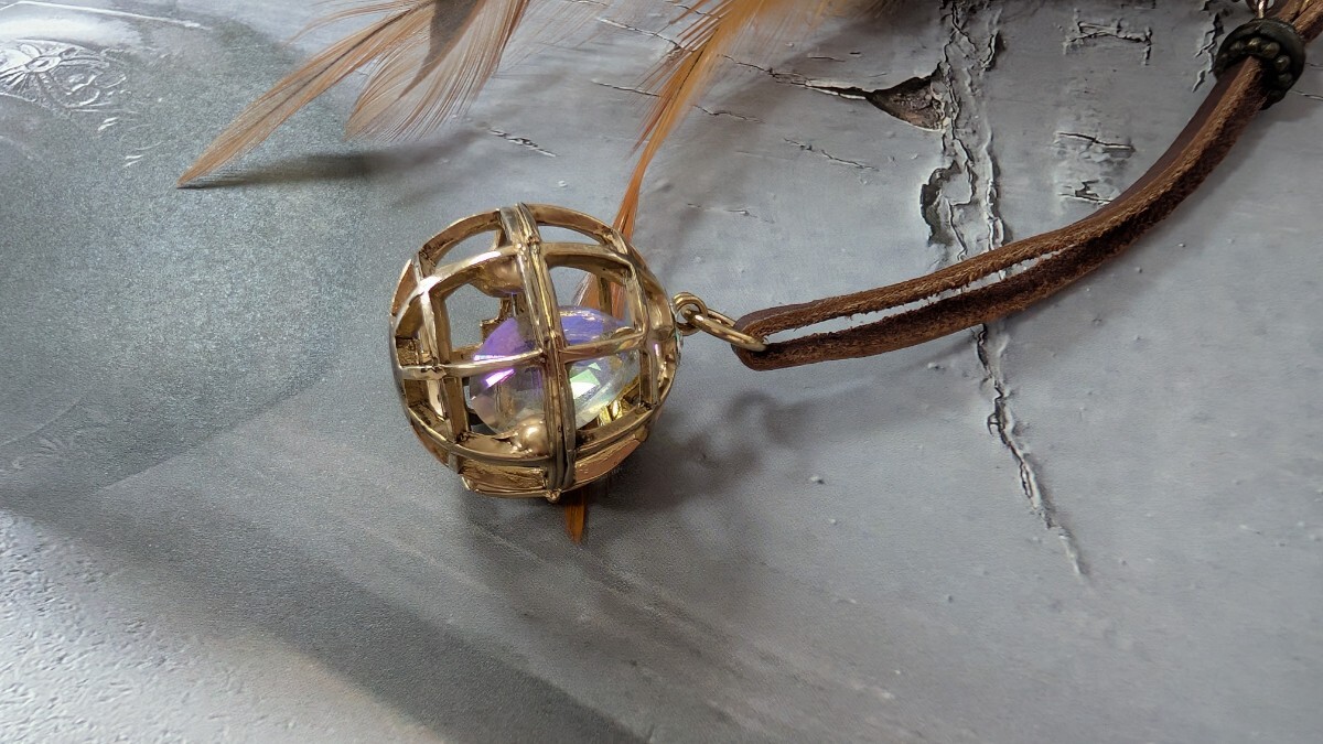 | オーロラビジュー&ゴールドカラーボール&羽 ネックレス | |