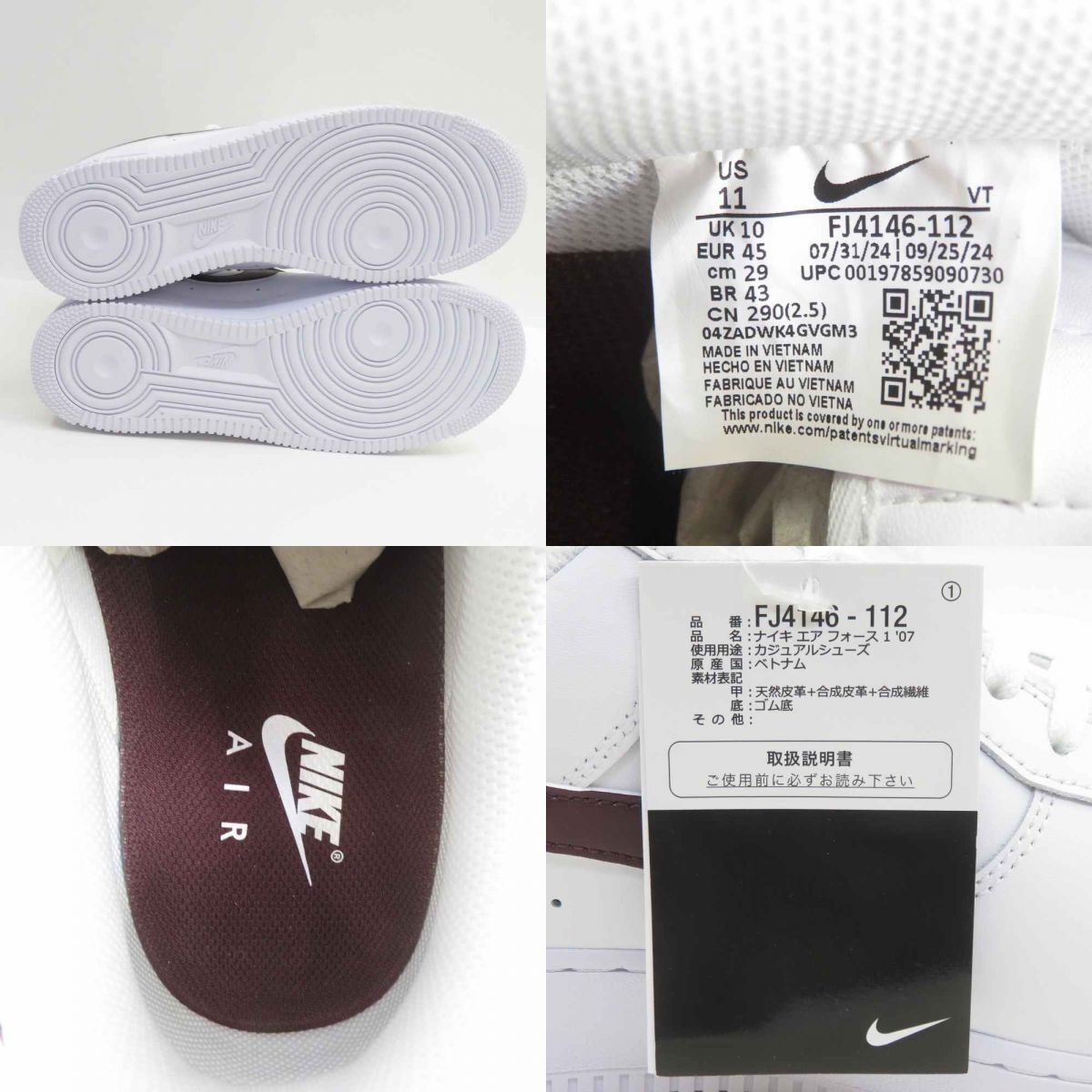 | 153s【未使用】NIKE ナイキ AIR FORCE 1 '07 エア フォース FJ4146-112 US11 29cm 箱有 □付属品:外箱、タグ ※画像にあるもので全てです。 □型番:FJ4146-112 □サイズ:29cm □状態:未使用 ・タグ付で使用された形跡が見られない為、未使用と判断しています。 ※保管による初期傷・汚れなどある場合が御座います。 未使用品ではありますが、二次流通品の新古品になります為、 完品をお求めの方はご購入をご遠慮くださいますようお願い致します。 ・外箱には保管に伴うスレ、キズ、汚れ、ヘコミ、破れなどの傷みが見受けられます。 ※モニターの環境により実物と画像の色が違うように見える場合があります。 |