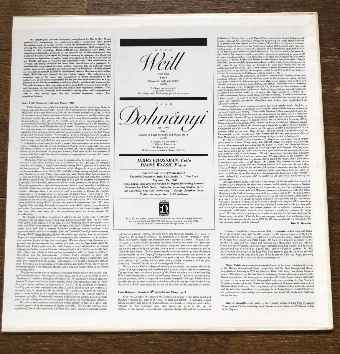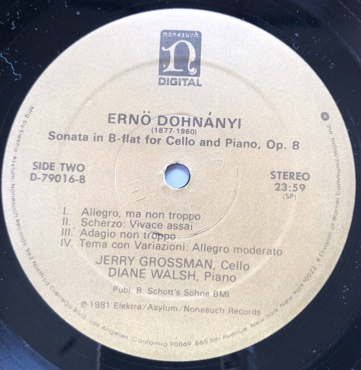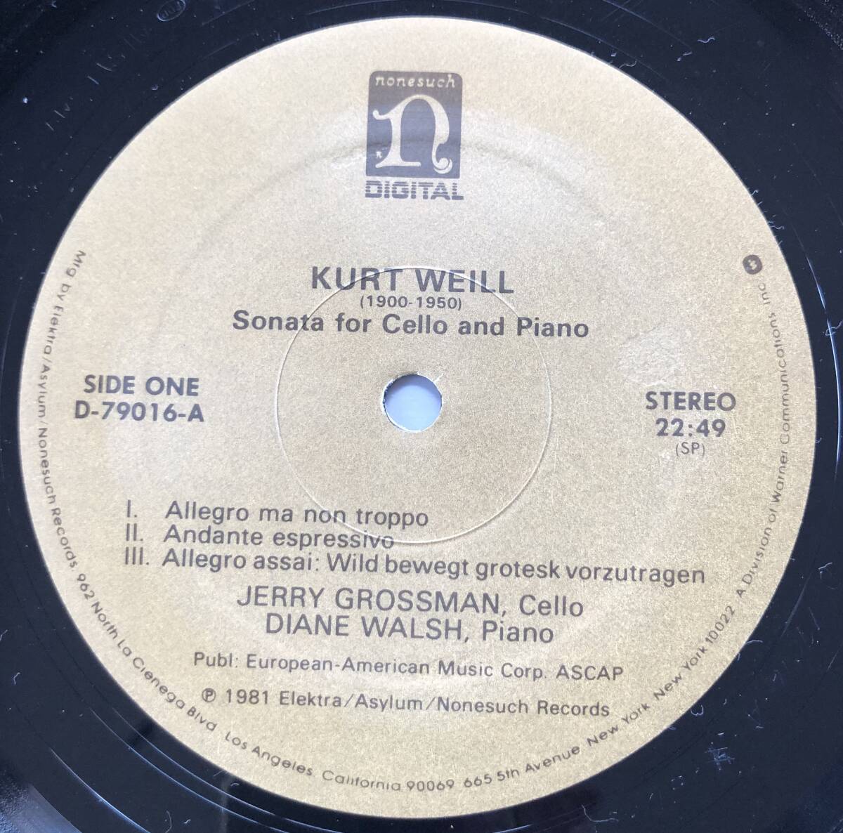 LP-Sep / 米・Nonesuch / J.Grossman (cello) D.Walsh (p) / K.WEILL_Cello Sonata, E.DOHNANYI_Cello Sonata Op.8