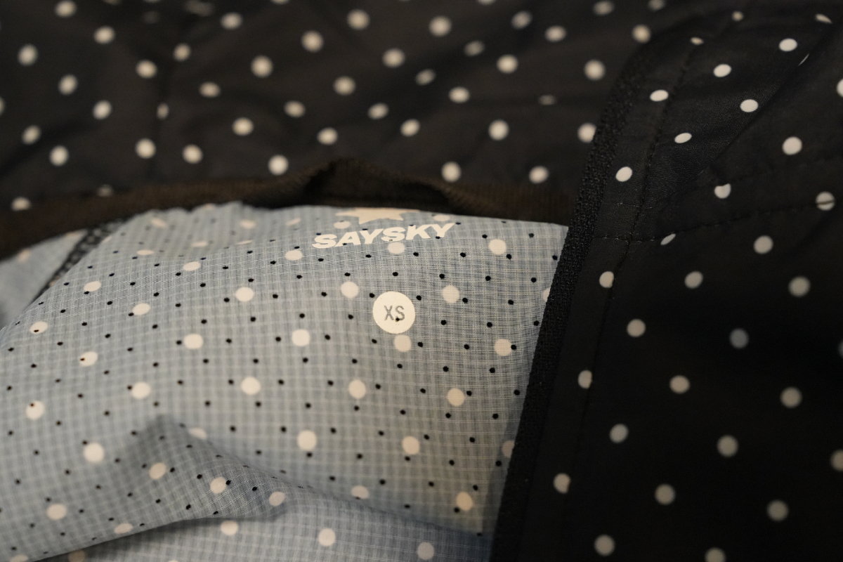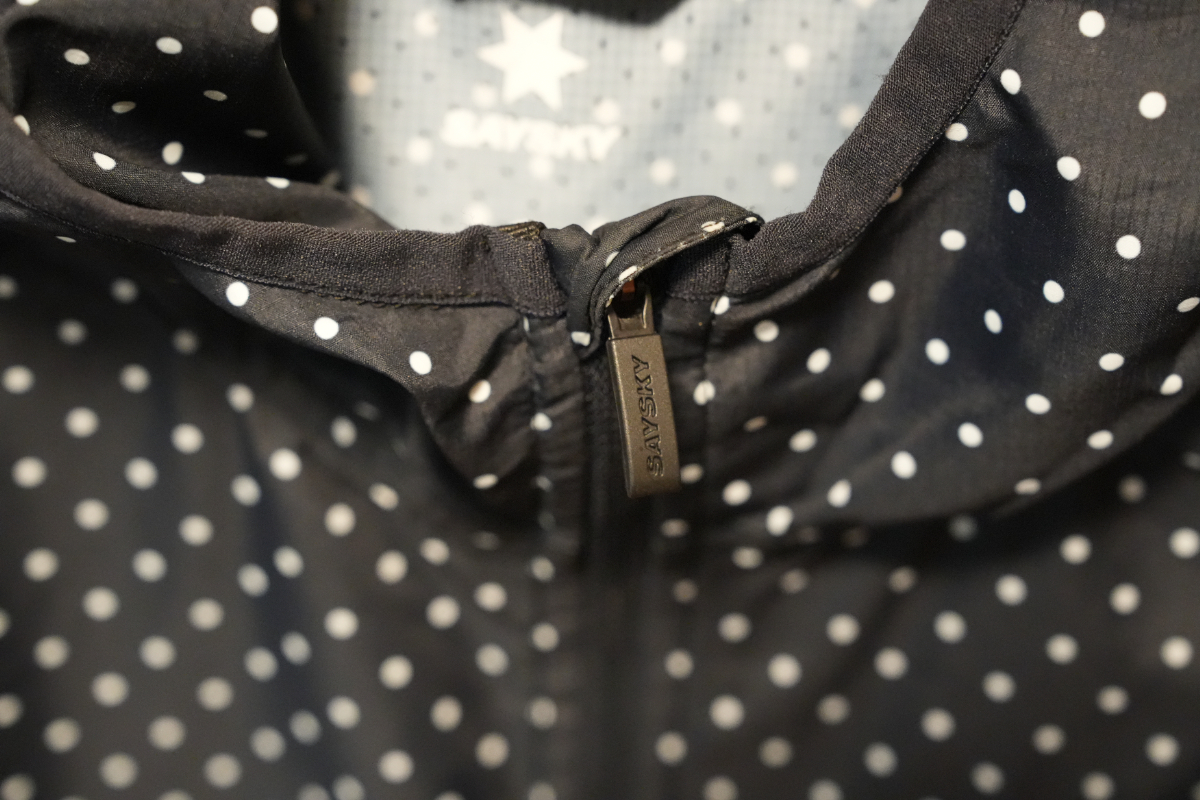 | 商品説明 | ブランド:SAYSKY(セイスカイ) 品名:ランニングジャケット カラー:白水玉、ブラック サイズ:XS 身幅51㎝ 着丈:後ろ69㎝ 前:64㎝ 当方身長170㎝、体重56kgでジャストサイズです。 日本だとS~Mサイズに相当します。 薄手ですが、割としっかりした生地で保温性と通気性を担保します。 防風性能もあります。 23年頃のモデルですが、使用回数は10回未満で程度は良好です。 袖の部分は、親指を通して時計と手の甲が防音できるタイプです。 着丈部分はドローコードで絞ることができます。現行品だと定価2.4万~2.6万円程度する商品となります。 |