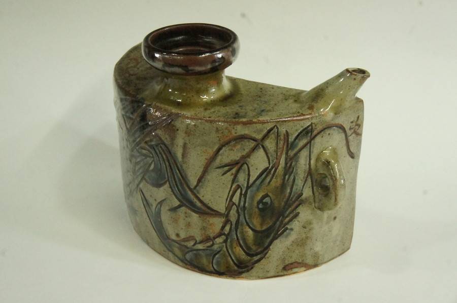 ●壺屋焼 人間国宝 金城次郎 海老魚文 大抱瓶