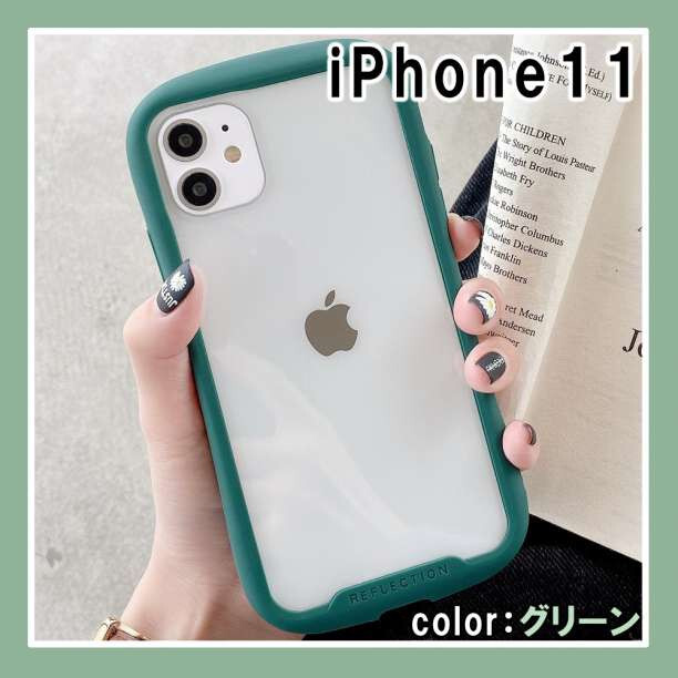 iPhoneケース アイフォンケース 耐衝撃 11 緑 グリーン クリア F