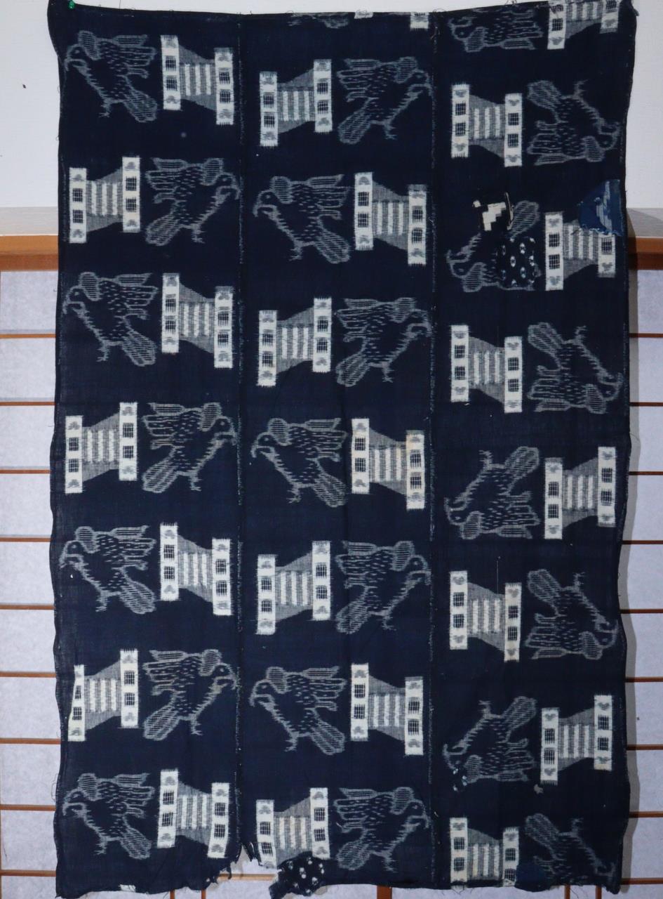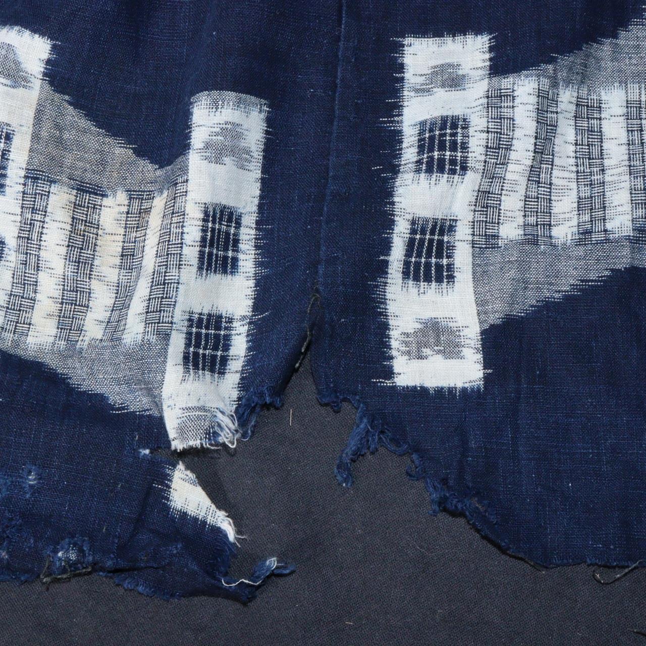 ◆ 商品説明本品は日本の伝統的な絣の古布で、「鷹文様」が織り出されています。この布は木綿藍染による深い色合いと、力強い鷹の意匠が見どころです。 古くから衣服や生活布として用いられています。 現在ではコレクションや資料としての価値に加え、インテリア素材としても人気を集めています。 【サイズ】 約130cm × 98cm 【状態】 経年による破れ・シミ・汚れがあります。 ボロ布特有の使用痕を含め、時代の風合いとしてお楽しみください。 当方は骨董品を中心に取り扱っており、安心してお取引いただけるよう丁寧な対応・梱包を心がけております。 ◆ 商品について