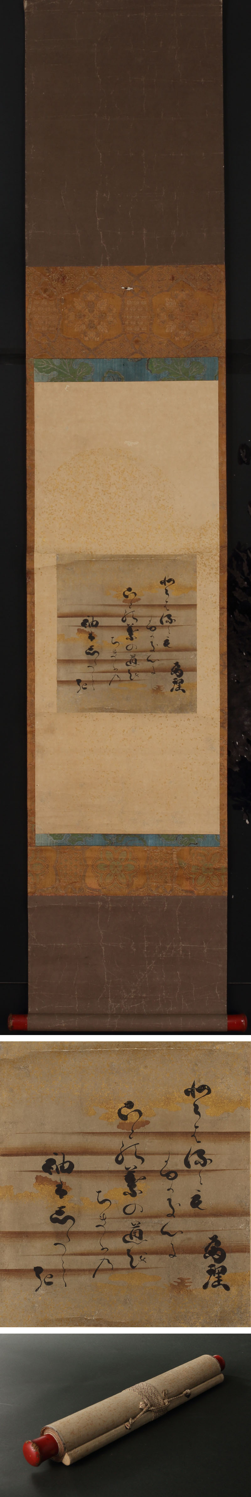 冷泉為理の和歌色紙です。 「とはるともふかき心にことの葉の 道をちぎりの袖はしたしき」と詠んでおります。歌道入門者へ染筆したものと思われます。 定家様と冷泉家の歌学を守り伝えた歌人の逸品です。 ◆冷泉為理 江戸後期-明治期の公卿・歌人。冷泉為全の子。上冷泉家。権中納言にすすみ、元治2(1865)年正二位。明治天皇即位の礼で宣命使をつとめ、即位の詔をよみあげた。1885年没、62歳。家集に「冷泉為理詠草」など。 寸法:高さ151cm、幅29cm(最大幅。若干の誤差はご了承下さい) 状態:経年のオレ、軸先にイタミがございます。 |