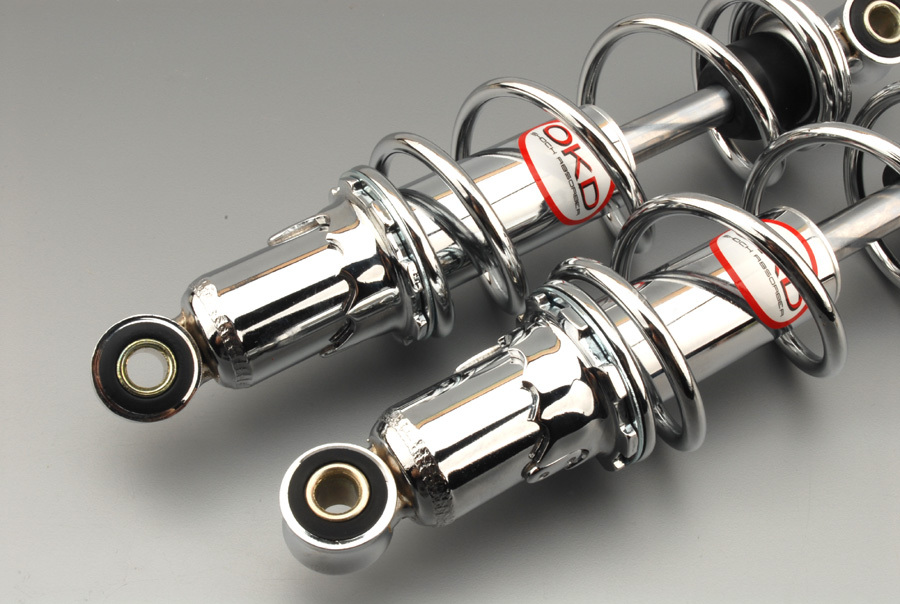 当社はOKD社から直接仕入れをしています。 ●モンキー DAX カブ用荒巻リアサスペンション OKD製リアショック こちらはスチールにメッキ仕様となります 2本セットです ロッド径:φ内径10mm 12mmのカラーも4個付属 スプリング径、約60mm 製造メーカー:OKD.(THAILAND)CO,.LTD. 生産国:タイ 軸間は多少前後しますのでご了承ください